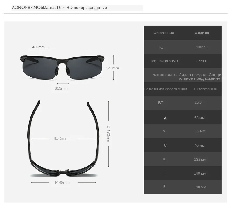Солнцезащитные очки AORON Мужские поляризационные, в алюминиево-магниевой оправе, антибликовые для вождения, в ретро стиле, UV400