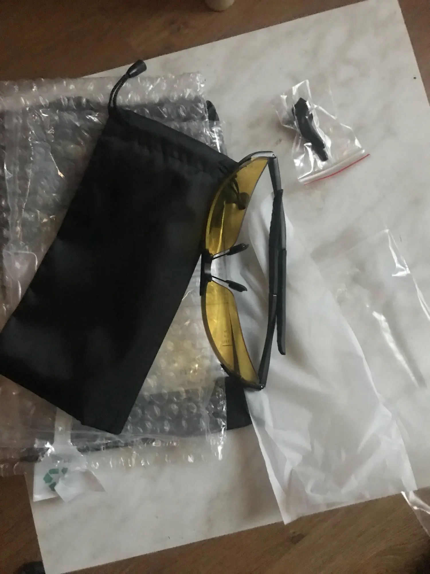 очень быстро доставили. 6.01 заказал и 20.01 уже забрал с почты .супер продавец. у жёлтых поляризации почти нету ,а у чёрных хорошая. очки очень качественные