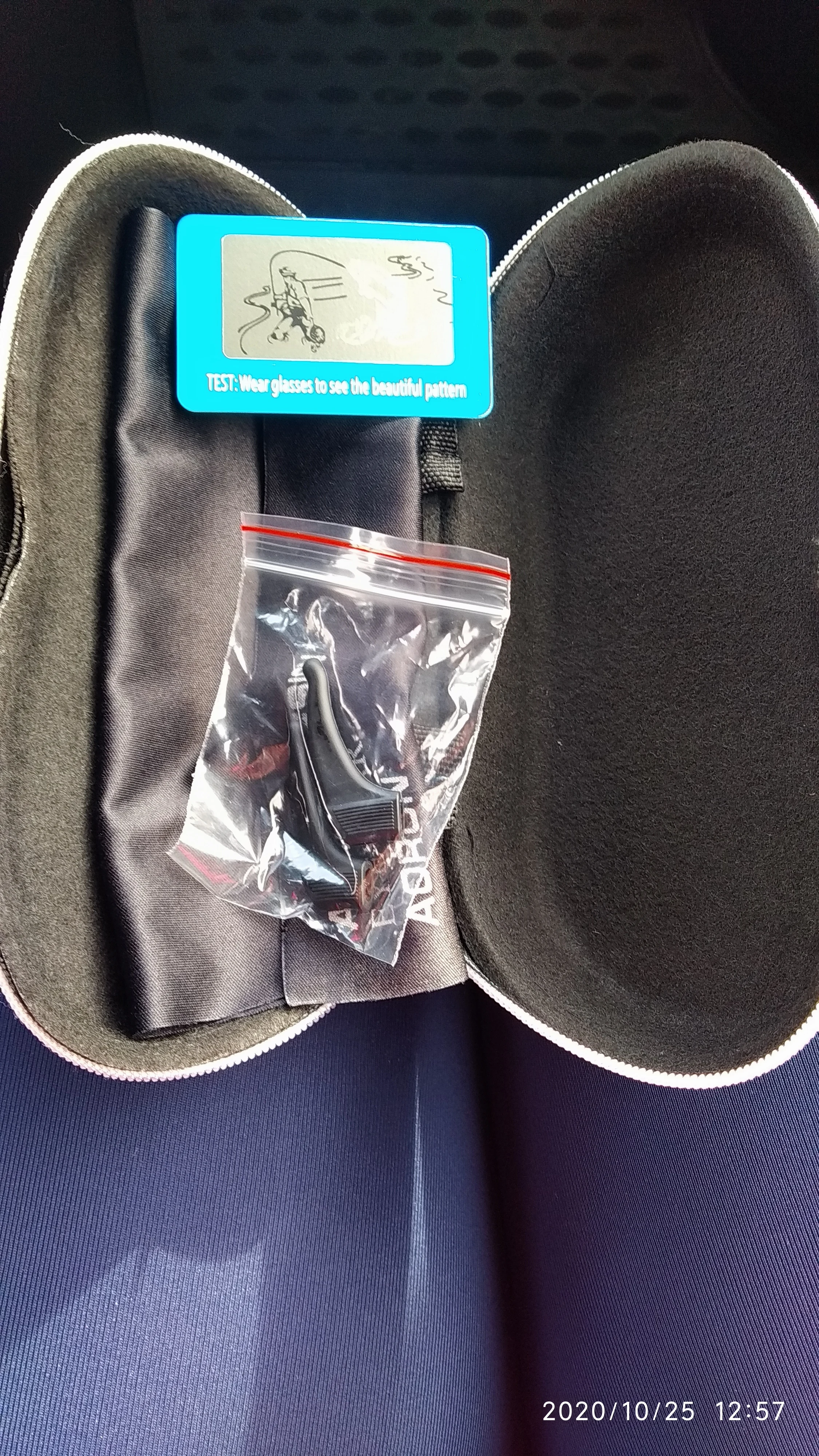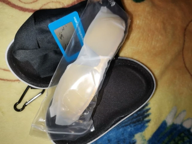Товар соответствует описанию. В комплекте с очками идёт футляр на молнии, тканевый лоскут/платок для протирания очков, индикаторная картинка и крючки из мягкого материала (что-то среднее между резиной и силиконом) для заушин, но нет тканевого мешочка для переноски очков. Для пересыла, футляр со всем содержимым был помещён производителем в воздушный пузырь, затем в пупырчатый мешок и в пакет для пересылки. При транспортировке ничего не пострадало. С продавцом не общался, трек не отслеживал, получил посылку через 5(пост). Продавца и товар рекомендую.