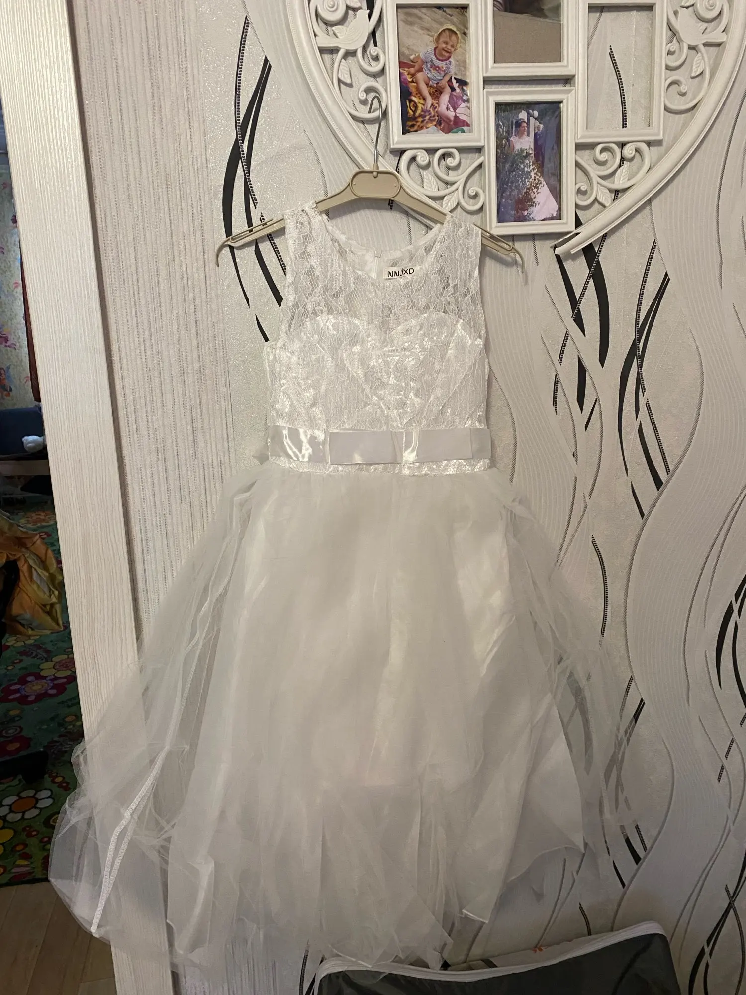 Белое кружевное платье с цветочным рисунком для девочек детское веч...