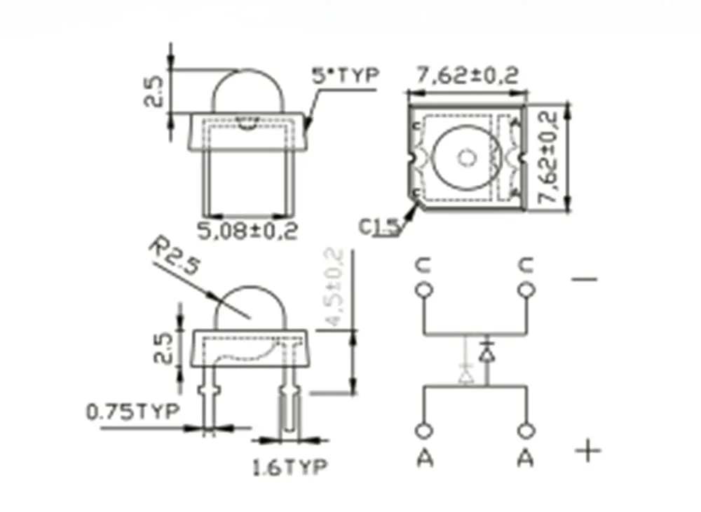 500 шт. 60 мА 5 мм красныйзеленыйсинийжелтыйтеплый белыйCW тройной ...