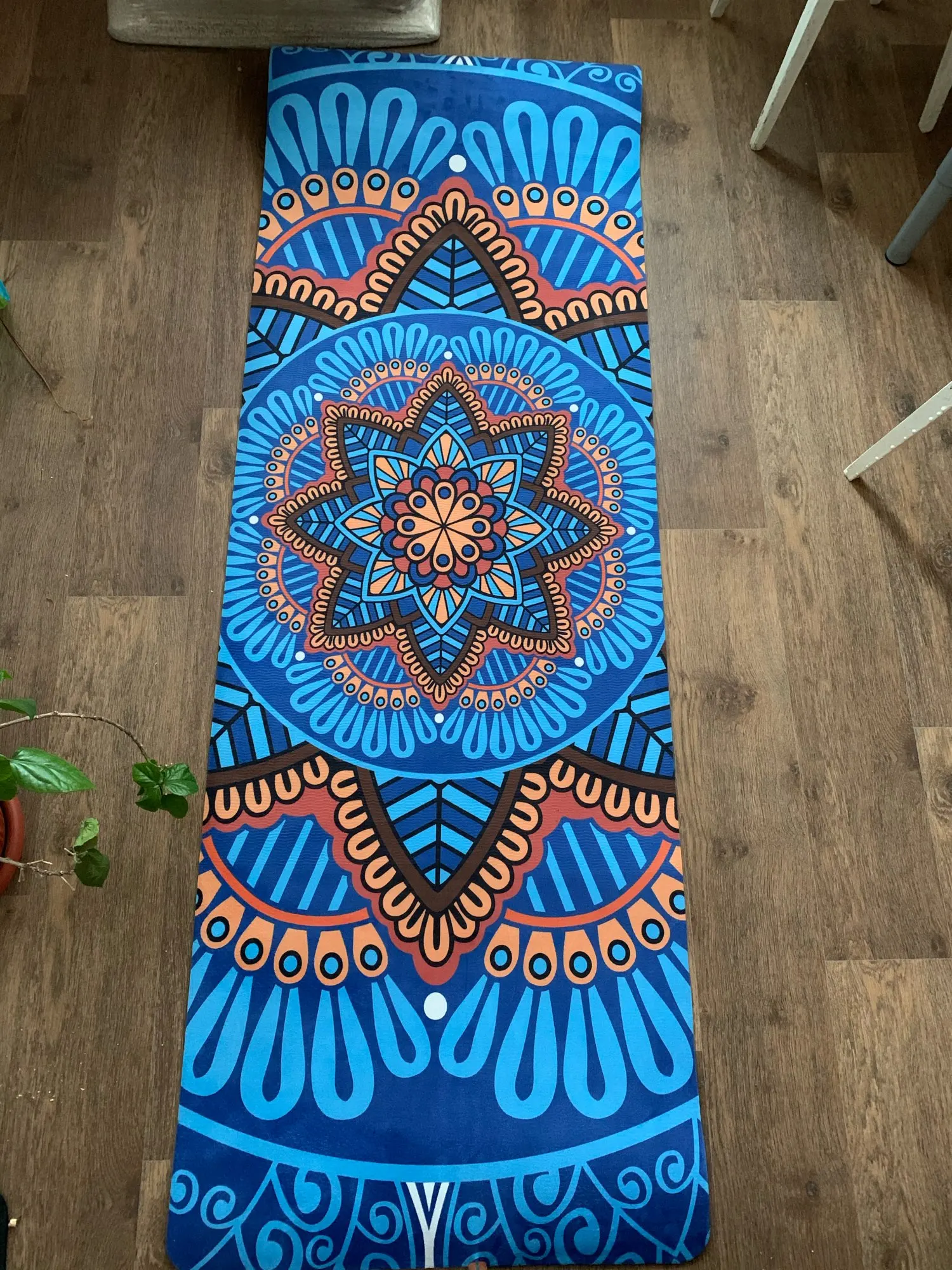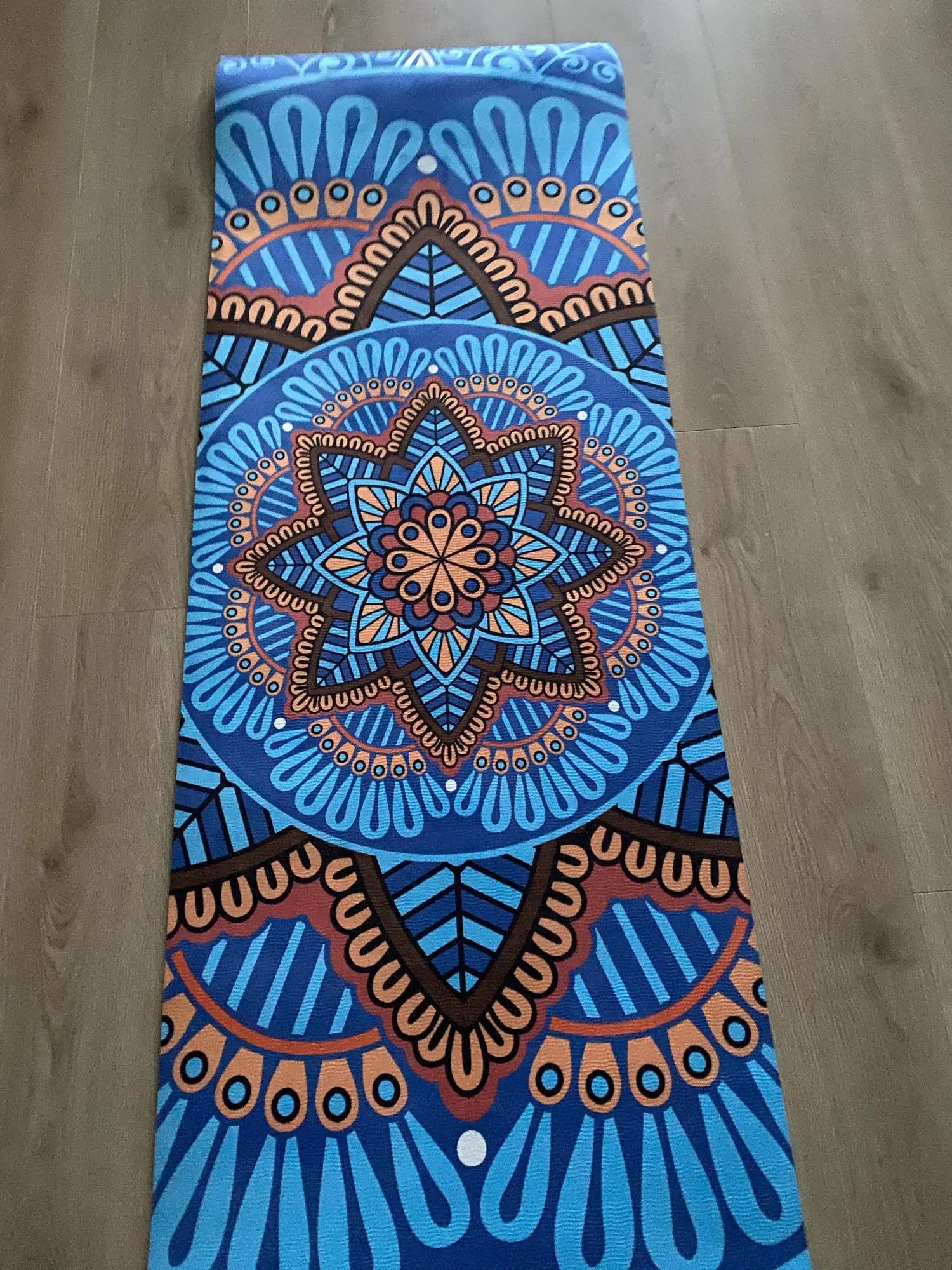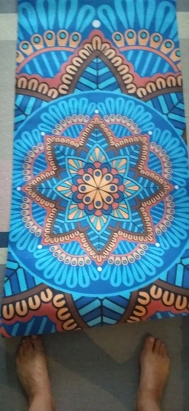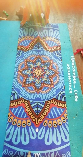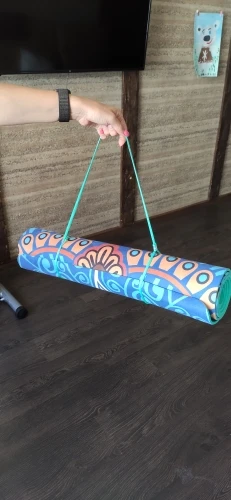 Доставка супер быстрая! 01.02 заказала, 06.02 получила на почте в Свердловской области. Самое главное его достоинство: ну очень красивый. Может скользить, мои ладошки почти сразу чуть мокрые, поэтому нормально. Пришёл со шнурком, удобно. При сворачивании рисунком внутрь, остались заломы на краях. Поперёк всего коврика идёт фиолетовая полоса, брак печати? Практикам это всё совершенно никак не мешает, красоту не уменьшает. Хорошо, но не идеально.