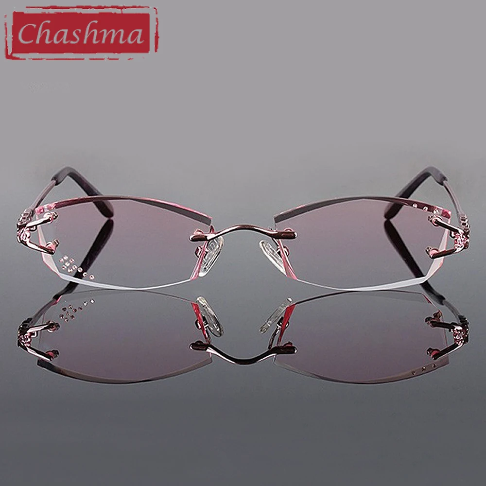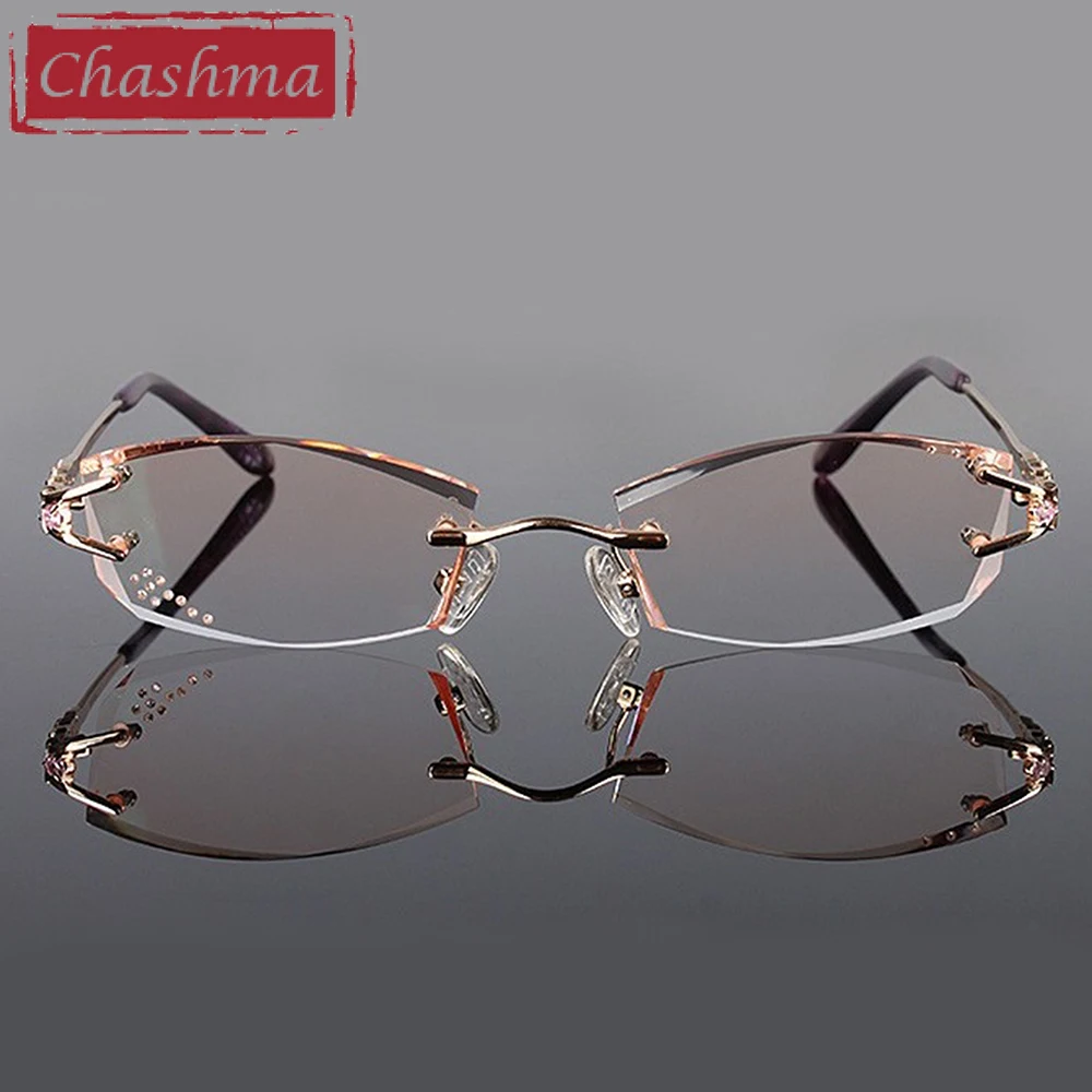 Бренд Chashma, модные женские очки из сплава, оправа для очков без оправы, женские цветные линзы, очки со стразами