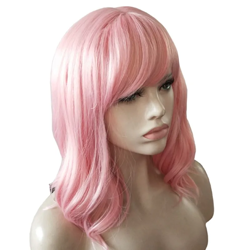 Парик WoodFestival для женщин, искусственные волосы, короткий, розовый, с челкой, для косплея, прямые, для вечеринок, 16 дюймов