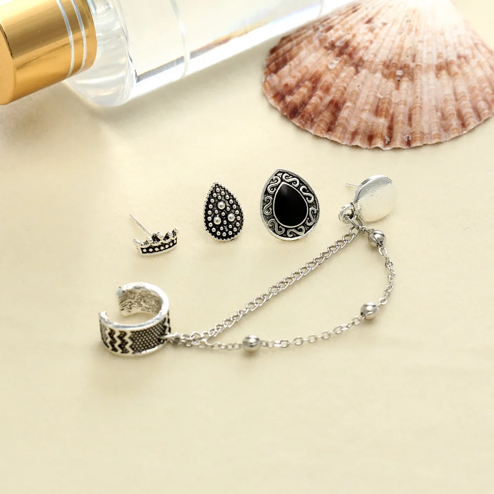 4 шт.компл. богемные серьги в стиле ретро с короной, модные женские серьги-каффы с цепочкой, серьги 2022