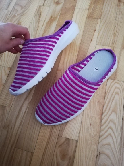 Посылка пришла достаточно быстро. Покупала маме на широкую ногу с высоким подъёмом. Подошло хорошо, точно по ноге. Ориентировалась на размерную линейку продавца - подошло идеально, так что измеряйте длину стопы и выбирайте размер. Покупали для дома, так как в обычных тапках устают ноги. Мама сказала, что ноги не устают и эффект ортопедический, как при ходьбе в кроссовках. Тапки очень лёгкие.