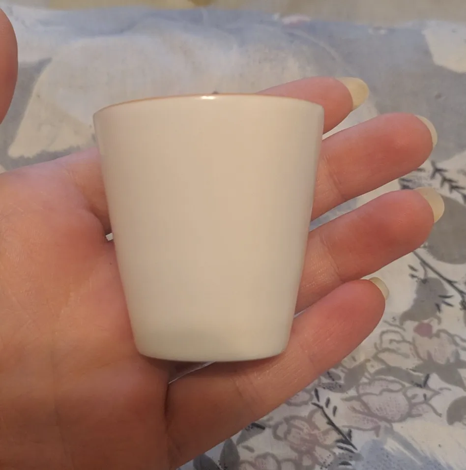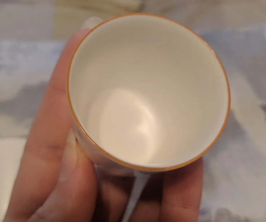 Изящная чашечка, из фарфора. Пью чай с удовольствием. Спасибо продавцу, делаю не первый заказ в этом магазине, довольна сервисом и отношением к покупателю.