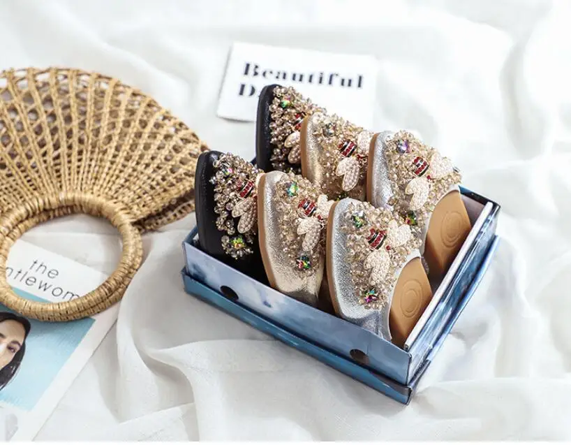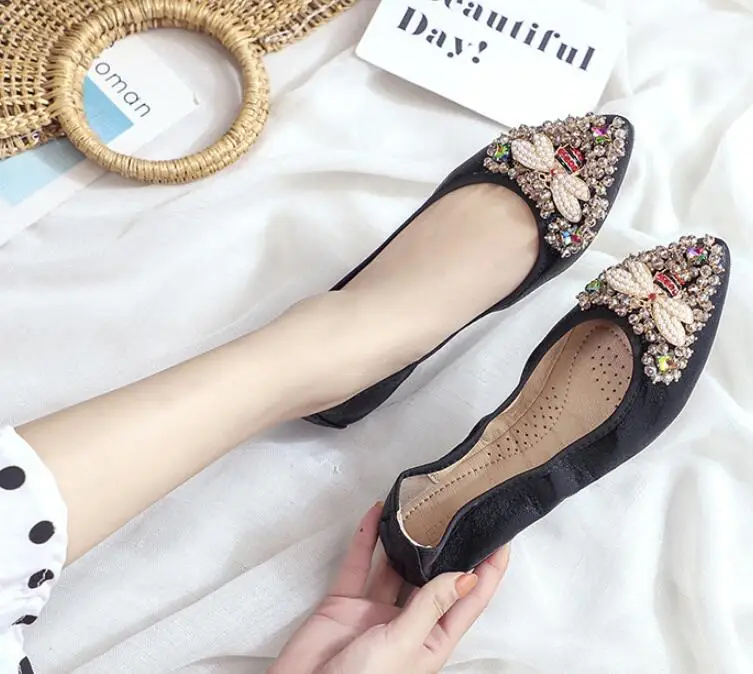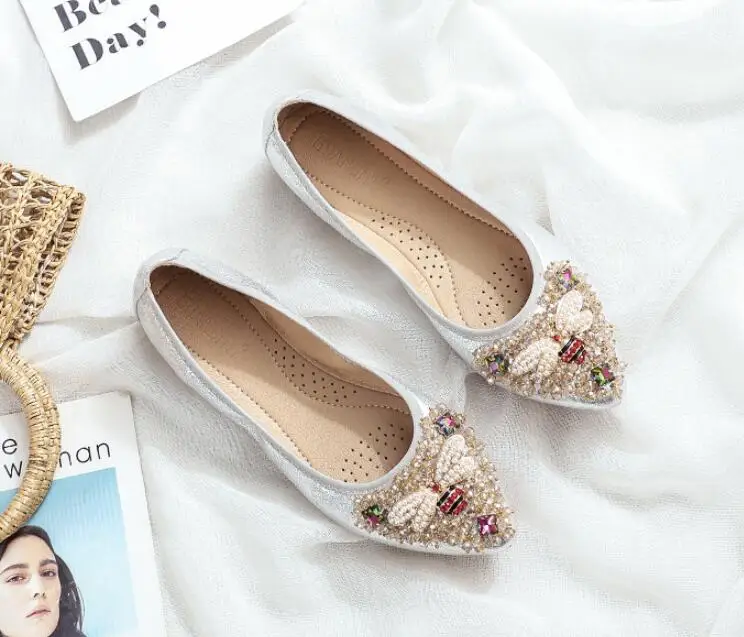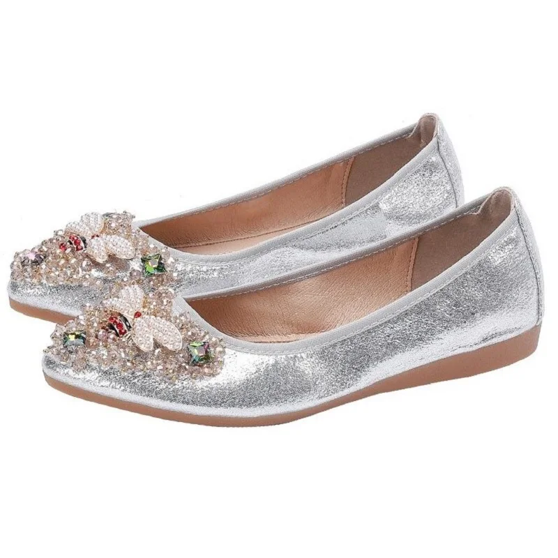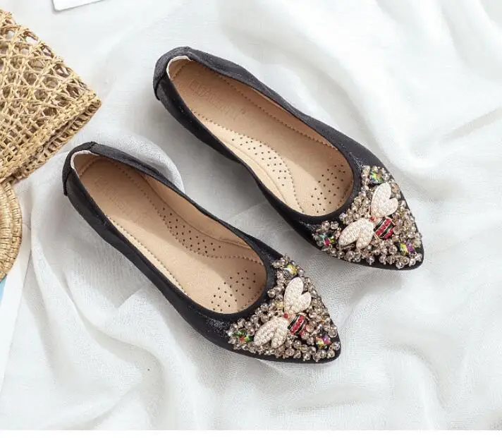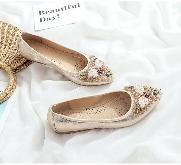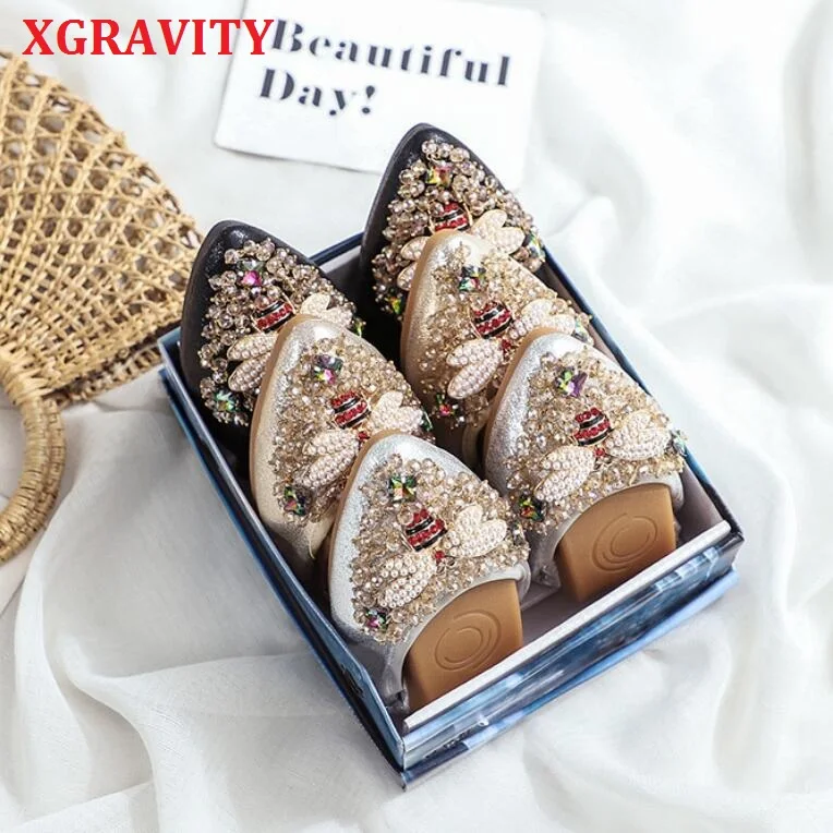 XGRAVITY большой Размеры нового дизайна с украшением в виде кристаллов; Женская обувь на плоской подошве; Элегантная и удобная женская обувь модные стразы женские мягкие пчелы обувь A031-1