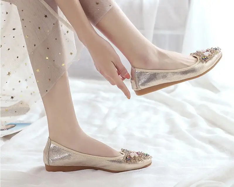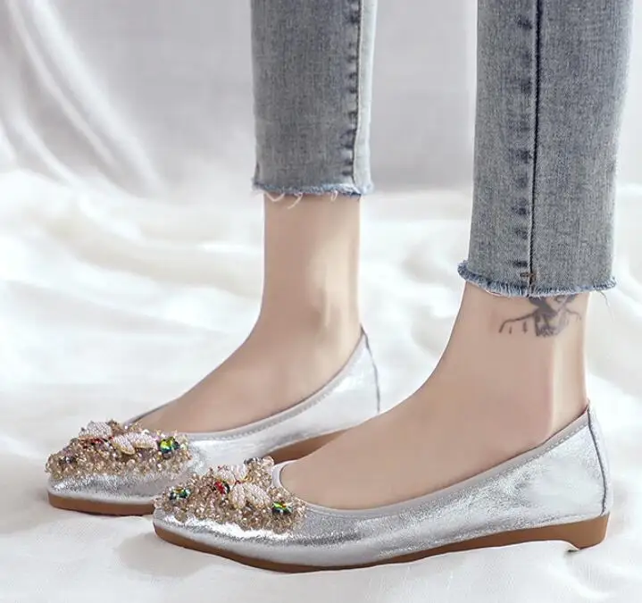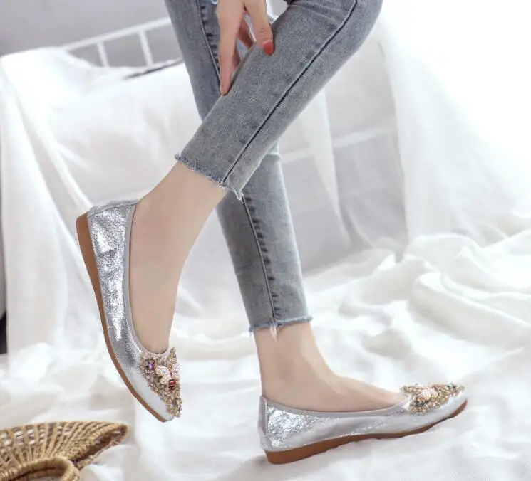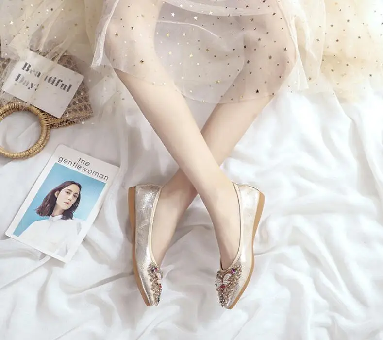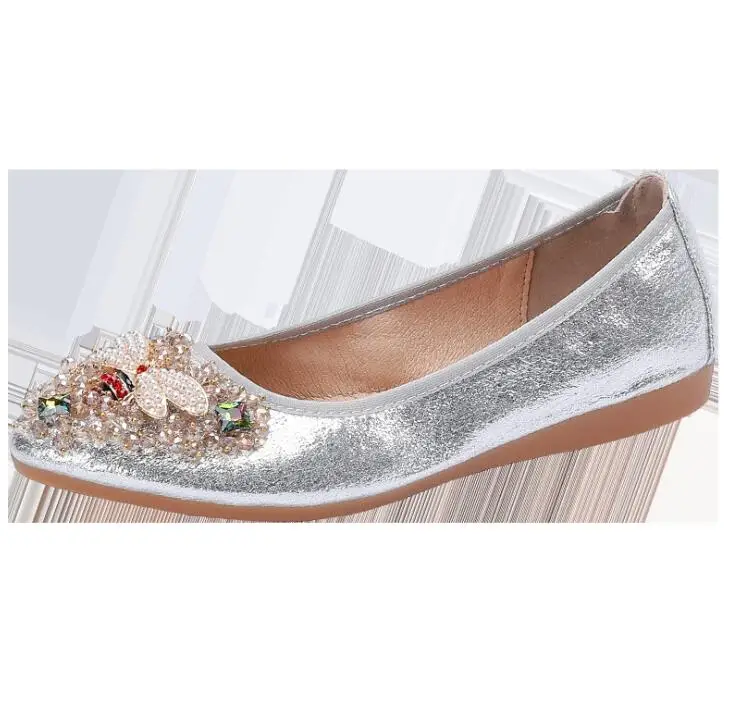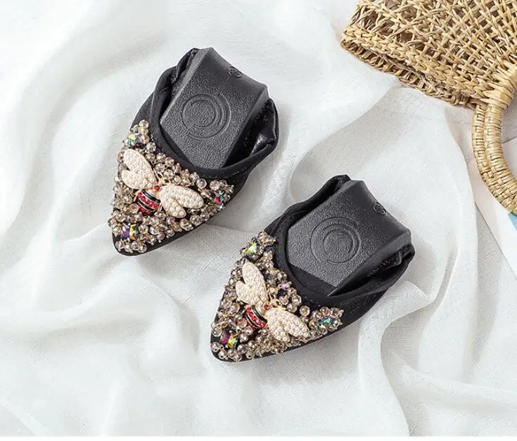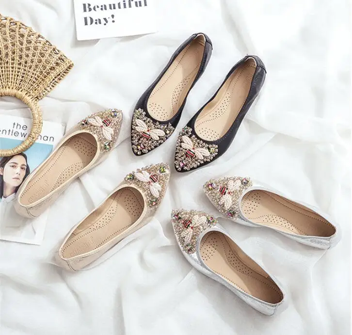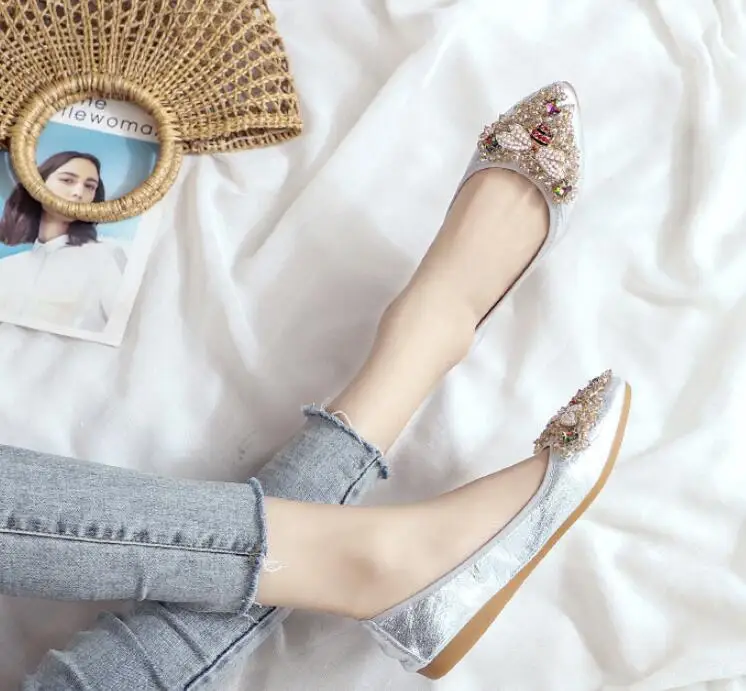 XGRAVITY большой Размеры нового дизайна с украшением в виде кристаллов; Женская обувь на плоской подошве; Элегантная и удобная женская обувь модные стразы женские мягкие пчелы обувь A031-1