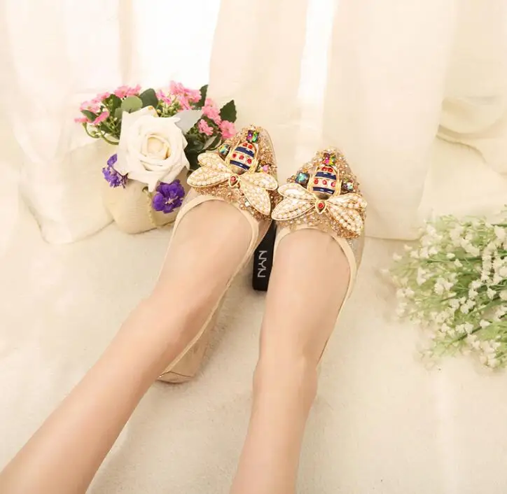 Обувь на плоской подошве с изображением маленькой пчелы, как показано ниже: