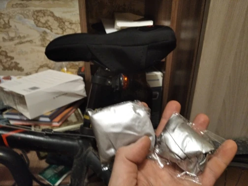 Пришло довольно быстро. Накладка неплохая. Налезает на довольно тощее седло. Упаковка хорошая. В подарок продавец положил целых два чехла от дождя и снега. Кстати эти чехлы хорошо влезают сзади, между седлом и накладкой. Думаю не потеряются. Ещё на накладке сзади есть петелька для фонарика, или катафота.