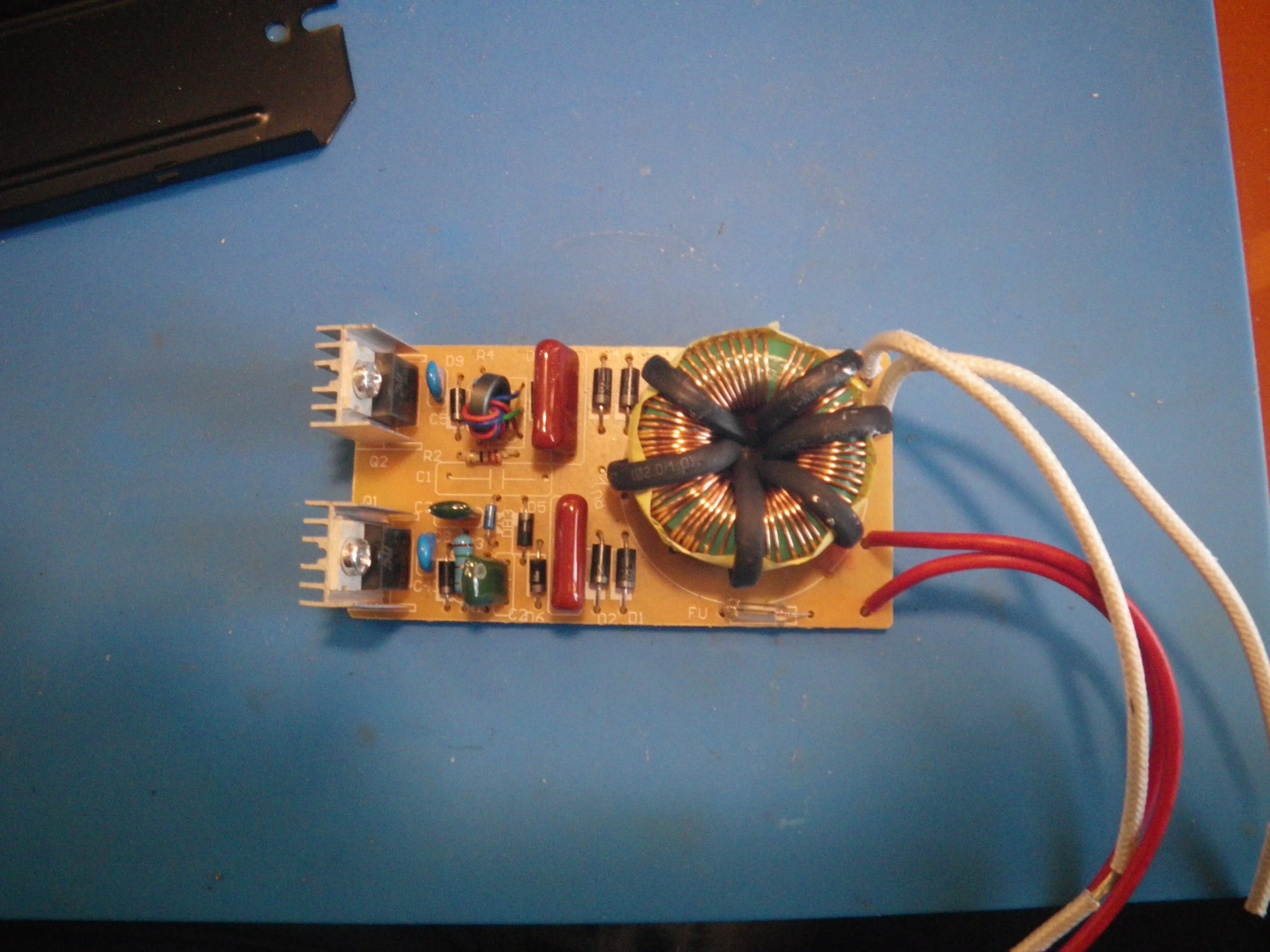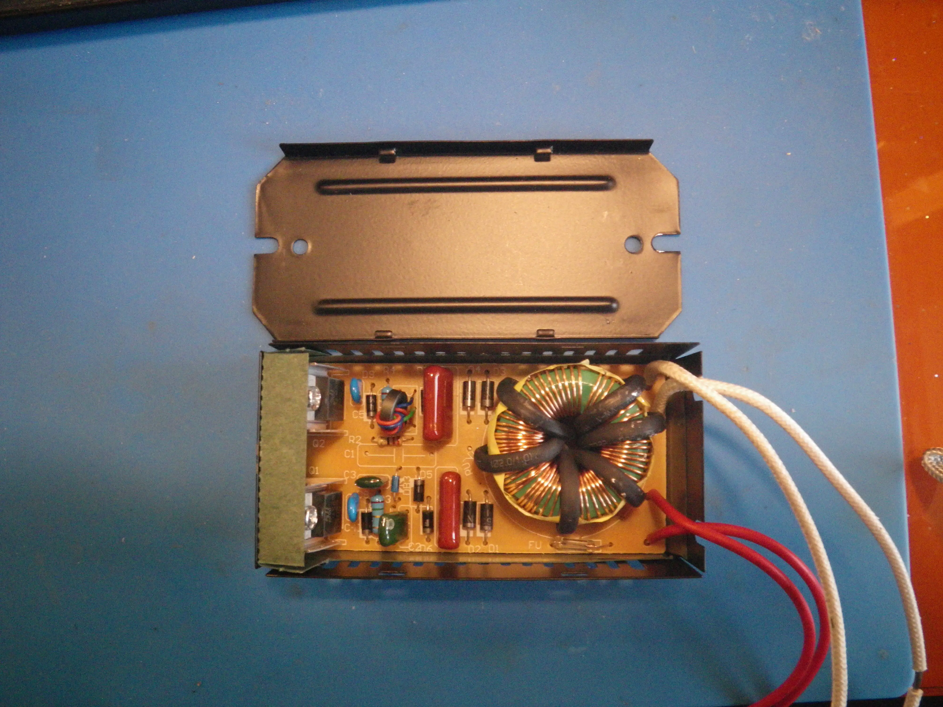 В общем всё вполне ожидаемо. Схемотехника, хоть и без защит, но вполне качественная. Защит нет никаких! Качество платы среднее. На фотках видно, что медь пузырится, в некоторых местах (возле трансформатора) вообще отслоилась. Это несколько разочаровало... Полную нагрузку пока не давал (только 40 Вт). Дополню после испытания. Да, пустое место по центру платы под C1 можно использовать для установки силового конденсатора - как раз по схеме идёт после диодного моста! Так что переделка под блок питания очень простая - именно для этого и брал. На мой взгляд колечко ферритовое маловато, но это смотря на какой частоте работает.