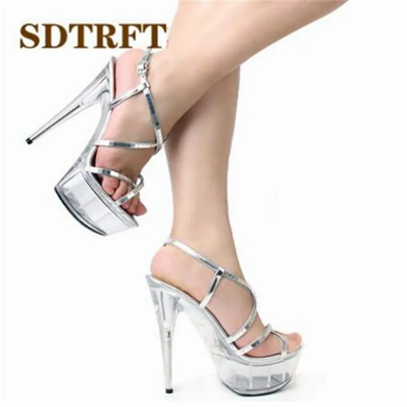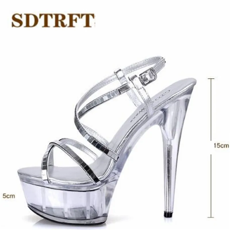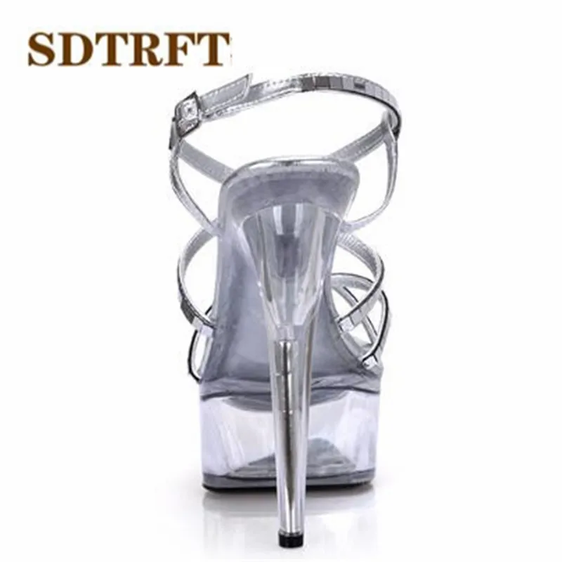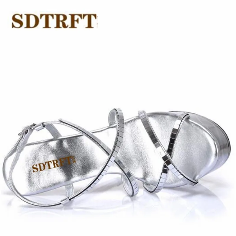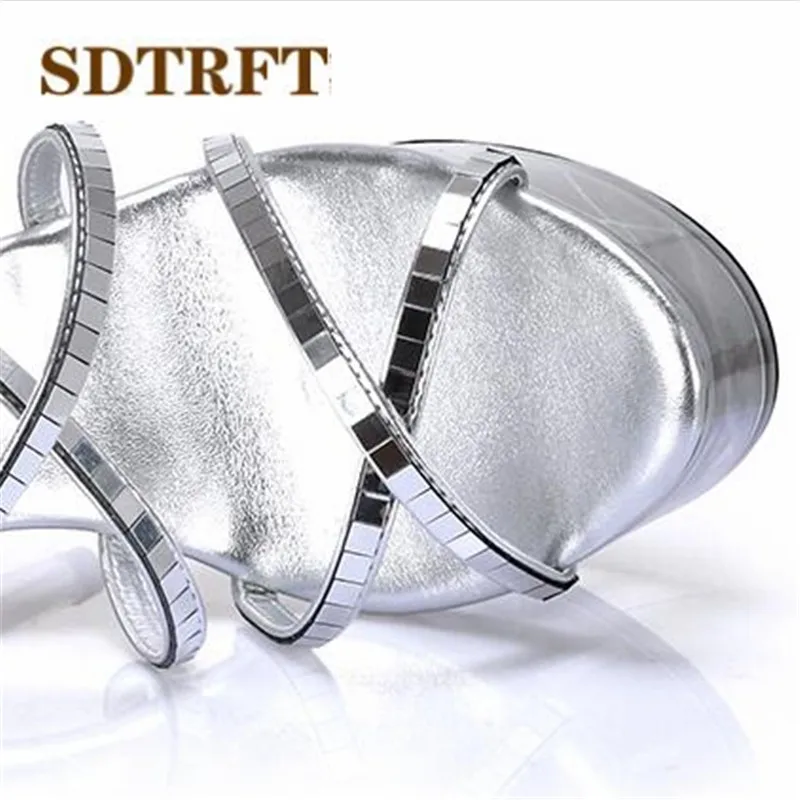 Туфли SDTRFT женские на шпильке 15 см, сандалии на платформе и тонком каблуке, с поперечным Ремешком, серебристые, большие размеры 34-43, 44, 45, 46, на лето