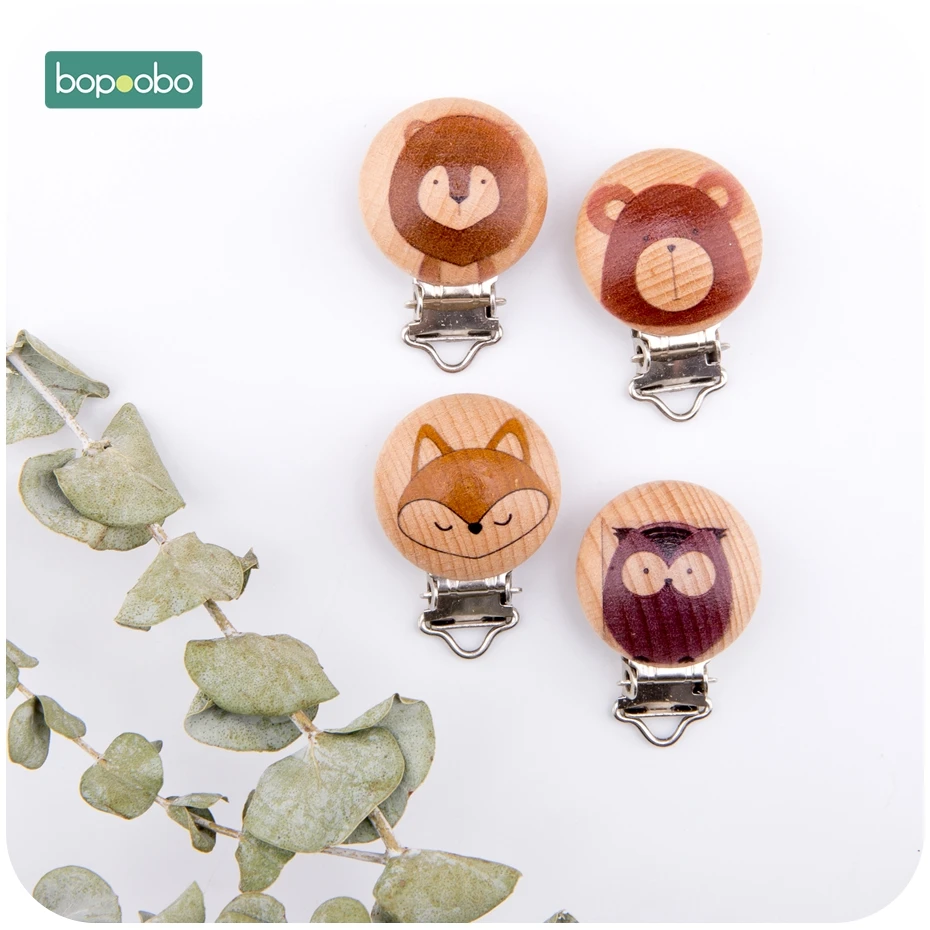 Bopoobo 2 шт Woode пустышка Детские аксессуары деревянная Соска с животным металлическим зажимом держатель сердце пустышка деревянный детский Прорезыватель