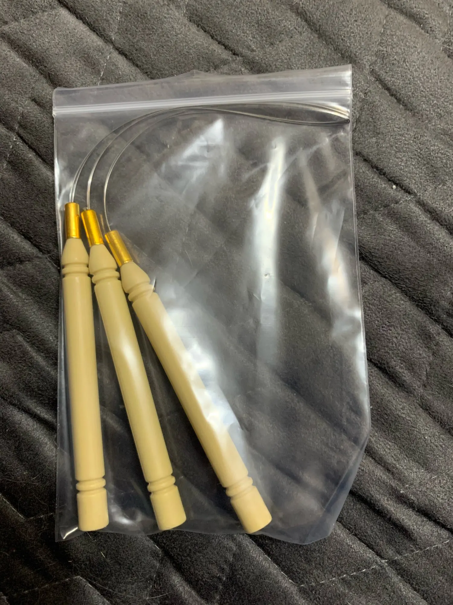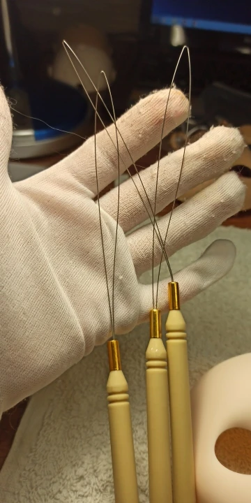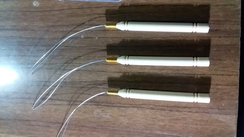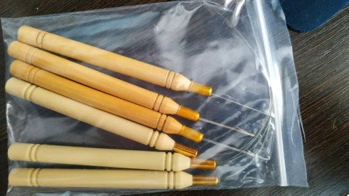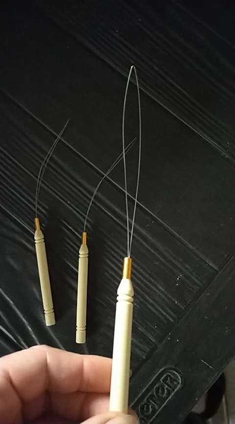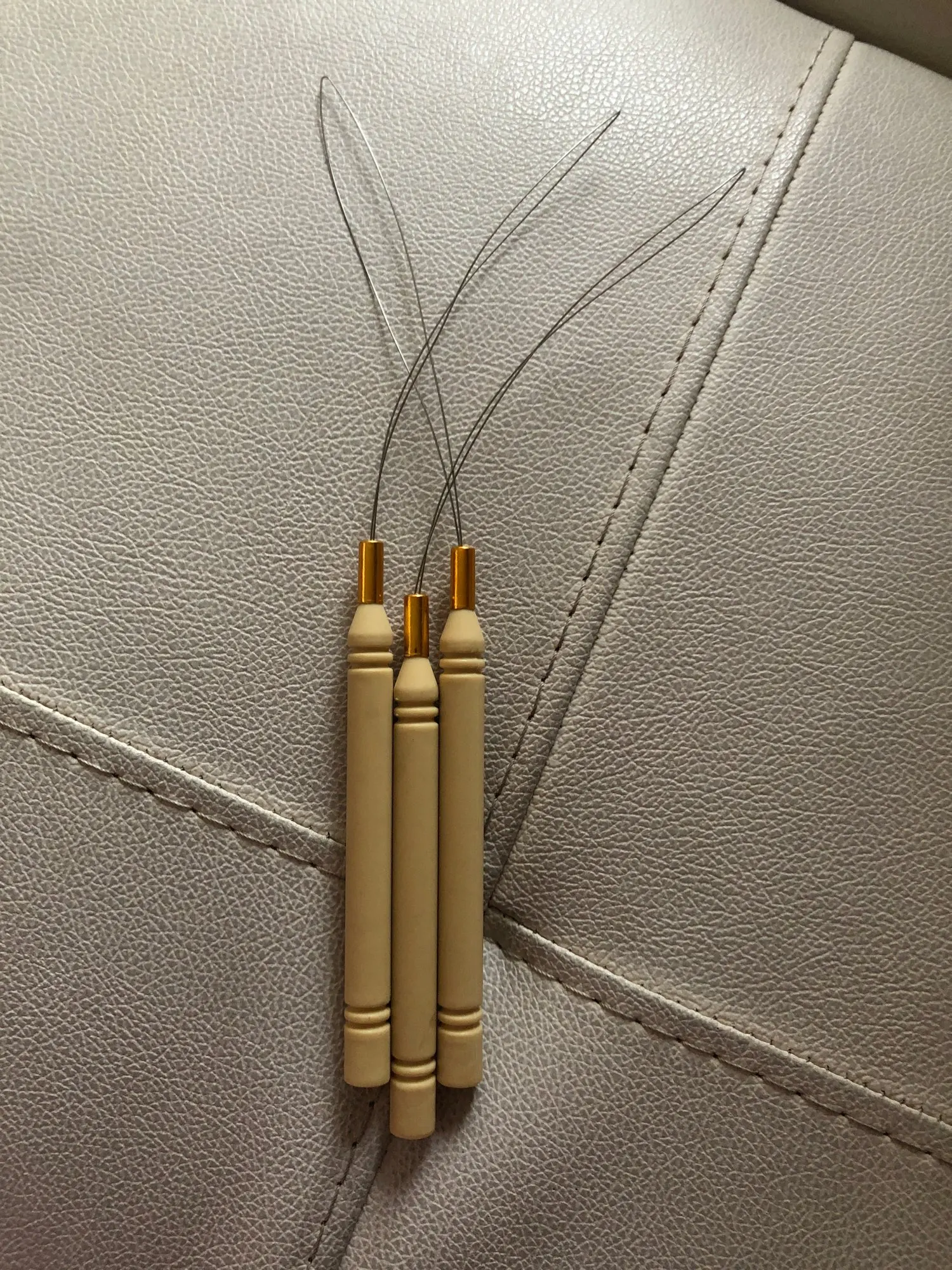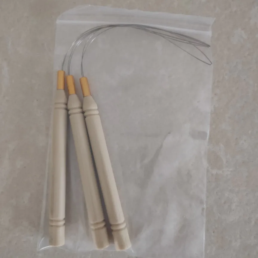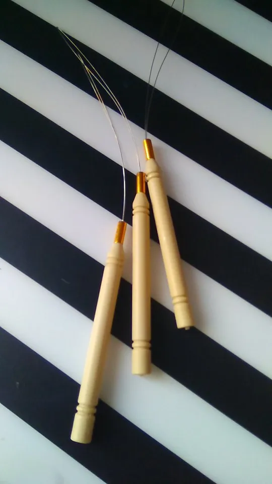 Заказываю второй раз. Очень хороший инструмент, прошивать волосы с его помощью очень удобно. Леска не толстая и не тонкая, при нажатии не теряет свое формы, по если переусердствовать, сломается в месте сгиба на кончике. Если для кого важно, ручка пластиковая, а не деревянная, как изображено на фото. Приятно, что в комплекте приходит 3 шт, вместо заявленных двух. Спасибо!☺️