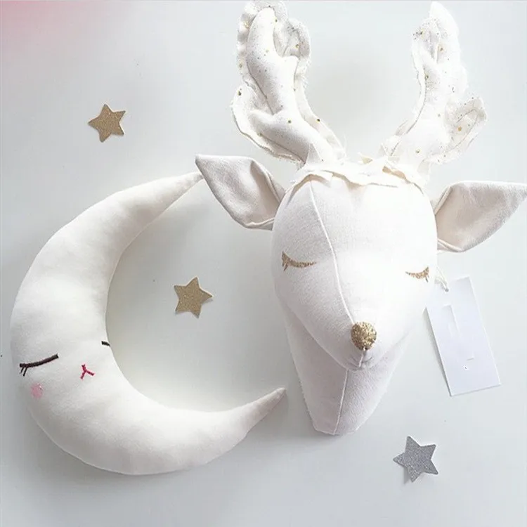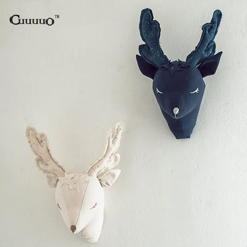 Голова-трофей с плюшевым оленем, настенное крепление для детской комнаты, гостевого коттеджа, набивное животное, украшение для детской спальни, настенное художественное украшение для дома