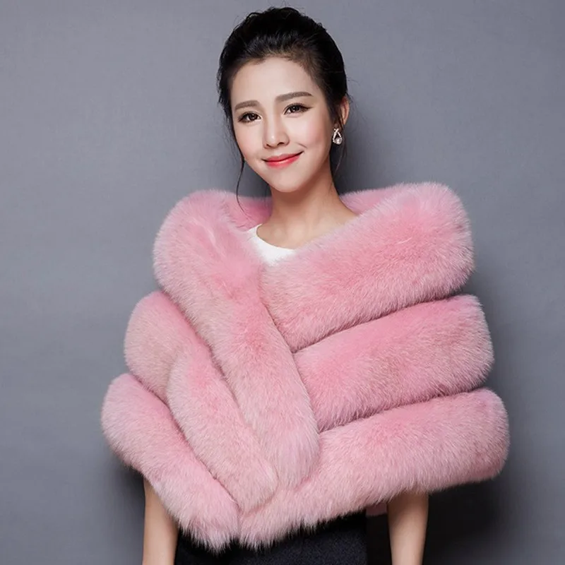 Qearlstarзимние женские обертывания из искусственного лисьего меха, Пашмина, супер Роскошная шаль для невесты, обертывания, Свадебная вечеринка, теплый меховой палантин 165*40 см, YT14