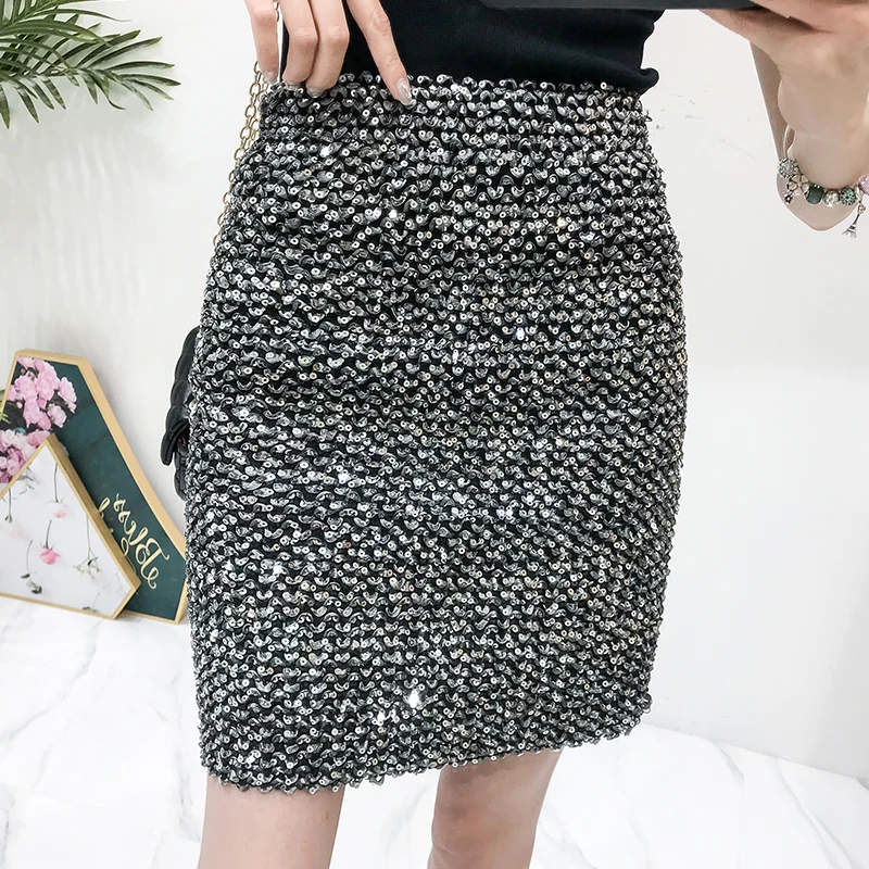 Юбка-карандаш Женская облегающая, модная облегающая эластичная юбка с блестками, одежда для ночного клуба, зима