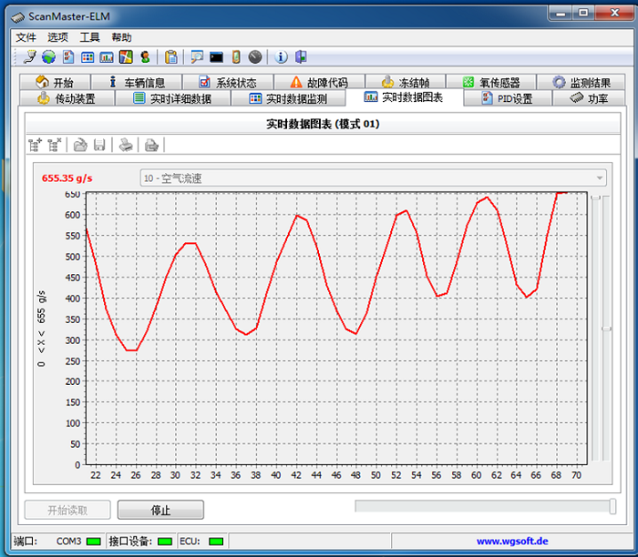 ScanMaster-ELM кривая воздушного потока (MAF)