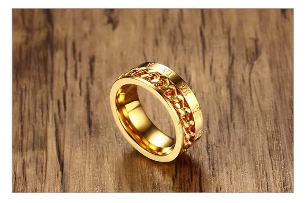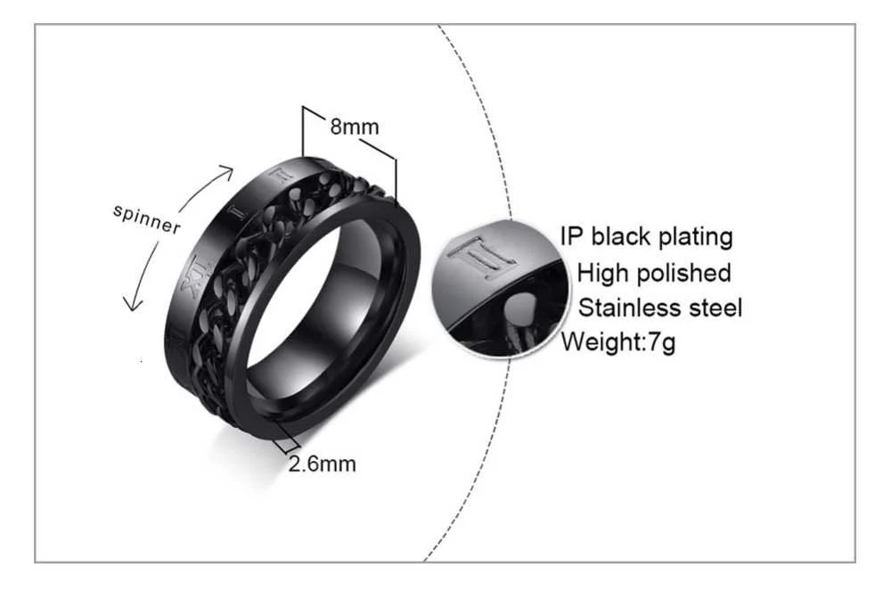 Vnox в стиле рок-панк, мужское Спиннер кольцо из нержавеющей стали 8 мм кольца черныйЗолотойСеребряный цвет цепочка коктейльные кольца Размер США 8-12