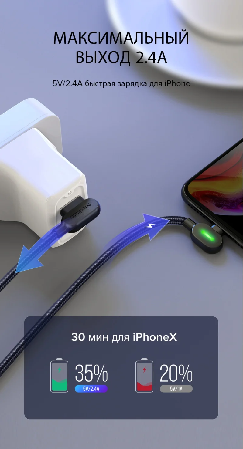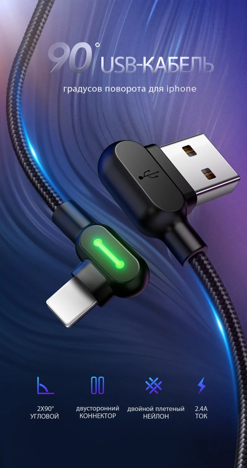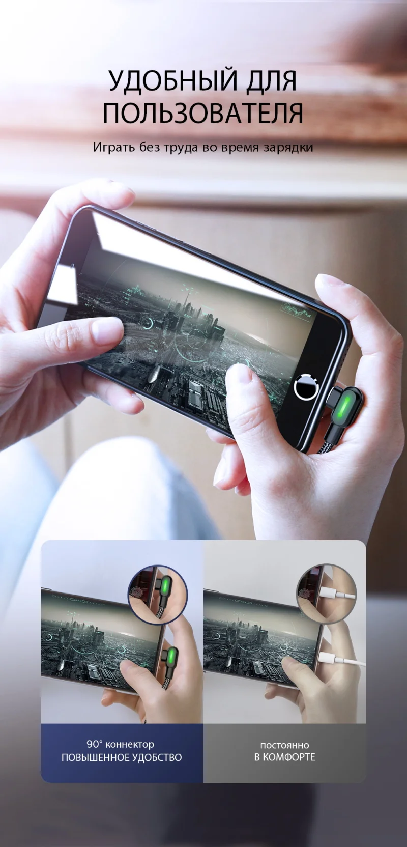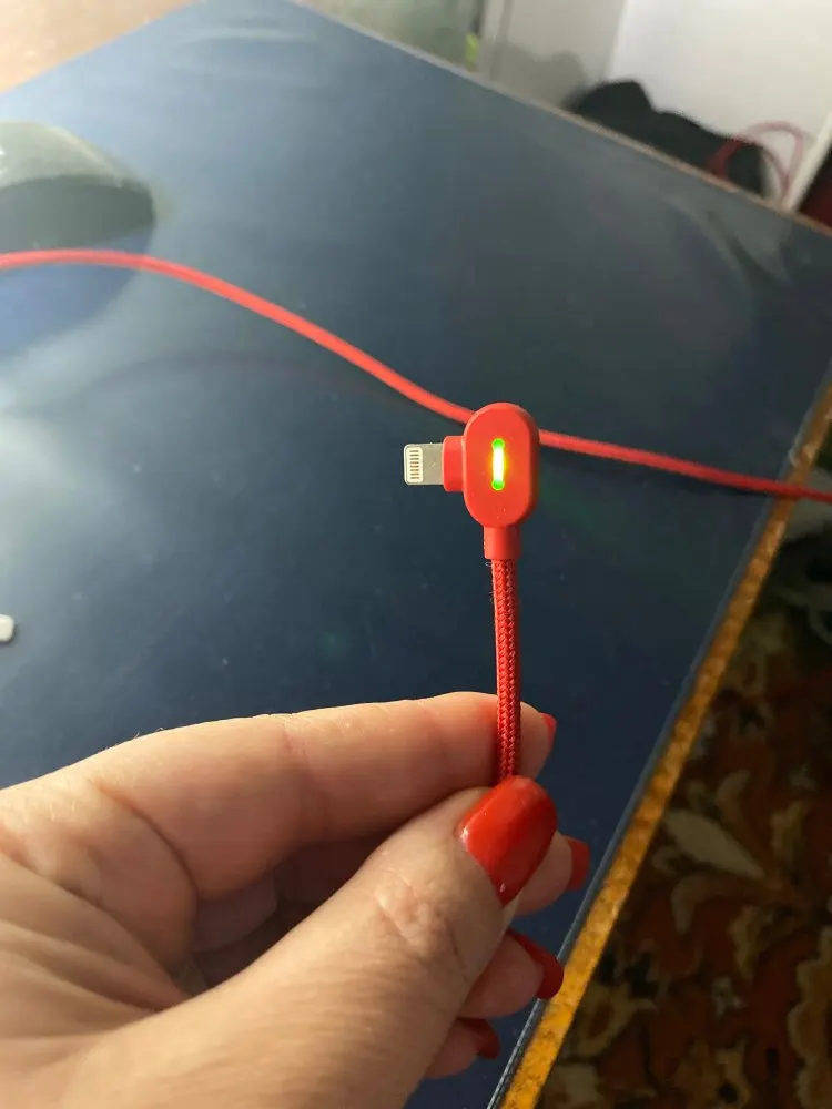 Итак, чем хорош провод: 1. USB вставлять любой стороной, 2. Очень быстро заряжает, 3. Приятный зеленый огонек, тактильные ощущения, 4. Удобно вставляется в телефон с любым чехлом, не мешается.