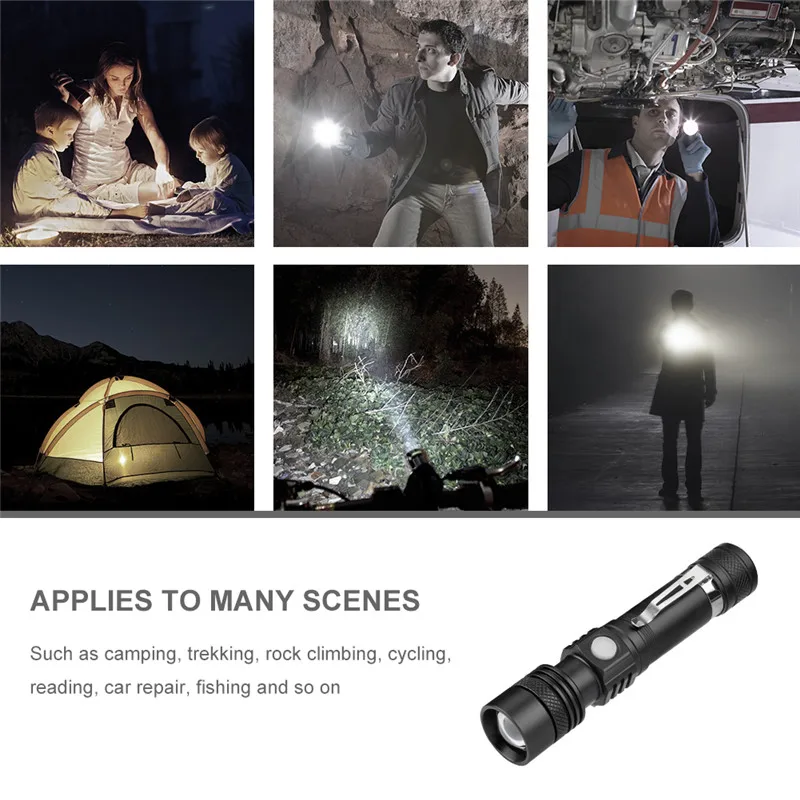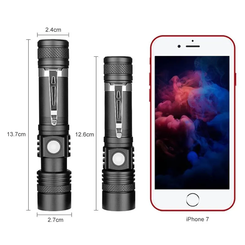 Ультраяркий светодиодный фонарик со светодиодной лампой XP-L V6 светодиодный водонепроницаемый фонарик с зумом, 4 режима освещения, многофункциональная зарядка через USB