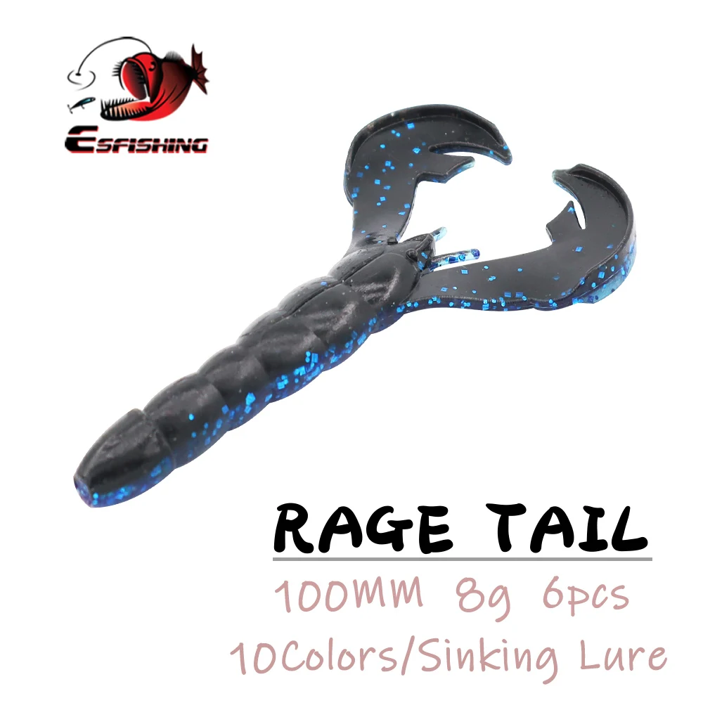 ESFISHING новые рыболовные приманки Craw Rage Tail 10 см 8 г 6 шт. Мягкие силиконовые наживка для ловли карпа искусственные фидерные воблеры