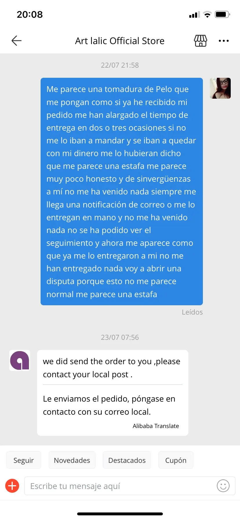 Они обманули меня, продукт так и не пришел, они извинили меня, и они предположили, что они продлили время защиты, и однажды внезапно появилось, как будто они уже доставили его мне, я написал продавцу, и он сказал мне пойти на почту спросить и по почте посылка даже не существовала, они никогда не отказываются вернуть мои деньги