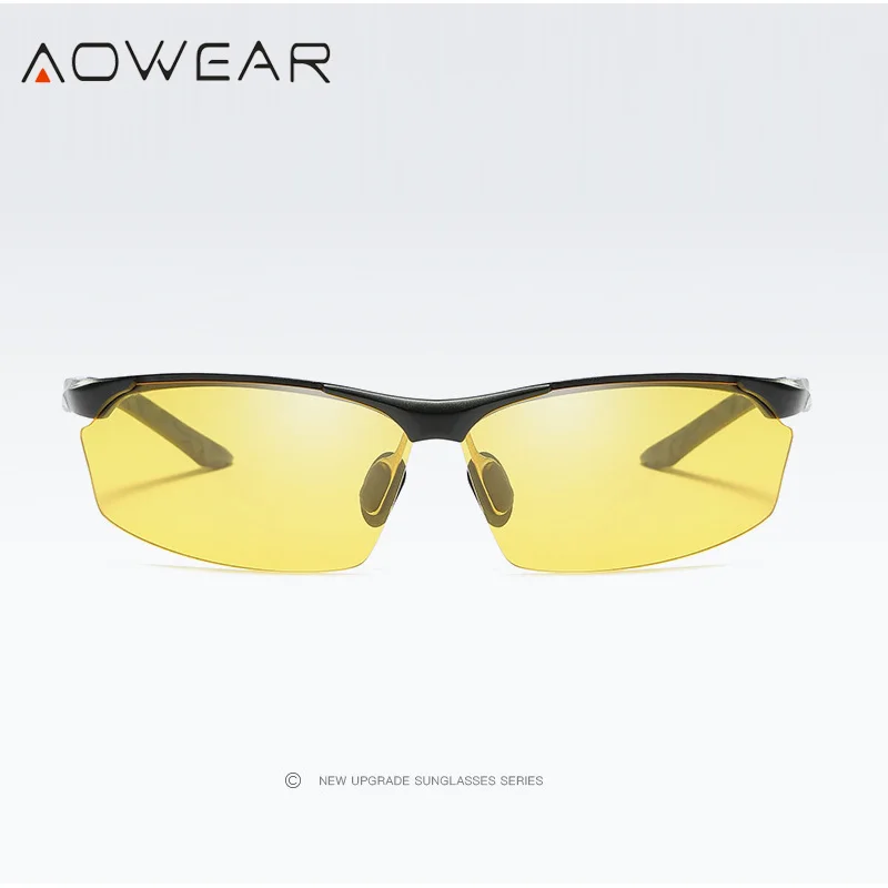 Мужские очки ночного видения AOWAER, желтые поляризационные солнцезащитные очки без оправы, с антибликовым покрытием, для ночного вождения