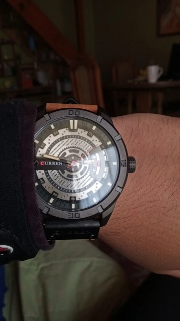 Precioso, igual que en la imagen, compré dos relojes de esta marca y tanto uno como el otro son espectaculares. Funciona perfectamente y el material aparenta ser de buena calidad en los dos relojes que compré. Viste la muñeca a la perfección. Tiene algo de peso pero es muy cómodo. Además llegó bastante rápido sin problema ninguno. Contentísima, lo use para regalar y quedé genial. A la persona que se lo regalé le encanta y ahora no se lo quita de encima !!!!! Estoy feliz y seguro volveré a recurrir a esta marca. Muy contenta. Mis felicitaciones al vendedor por este gran producto sin duda una gran relación calidad precio, como ya dije.... Para repetir sin pensarlo!!!