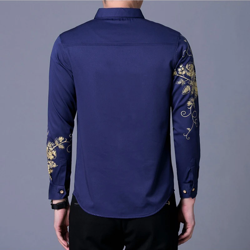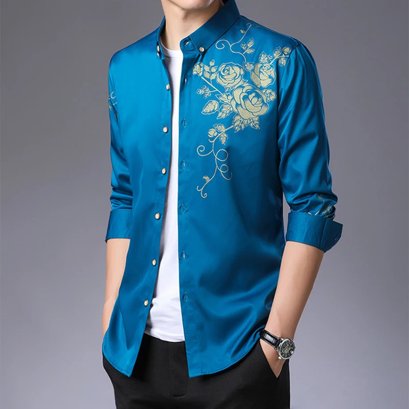 Бренд винно-красные мужские рубашки 2022 Модная Золотая Роза цветочный принт на пуговицах мужская приталенная рубашка с длинным рукавом Chemise Homme