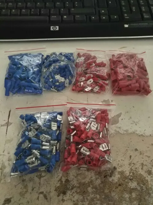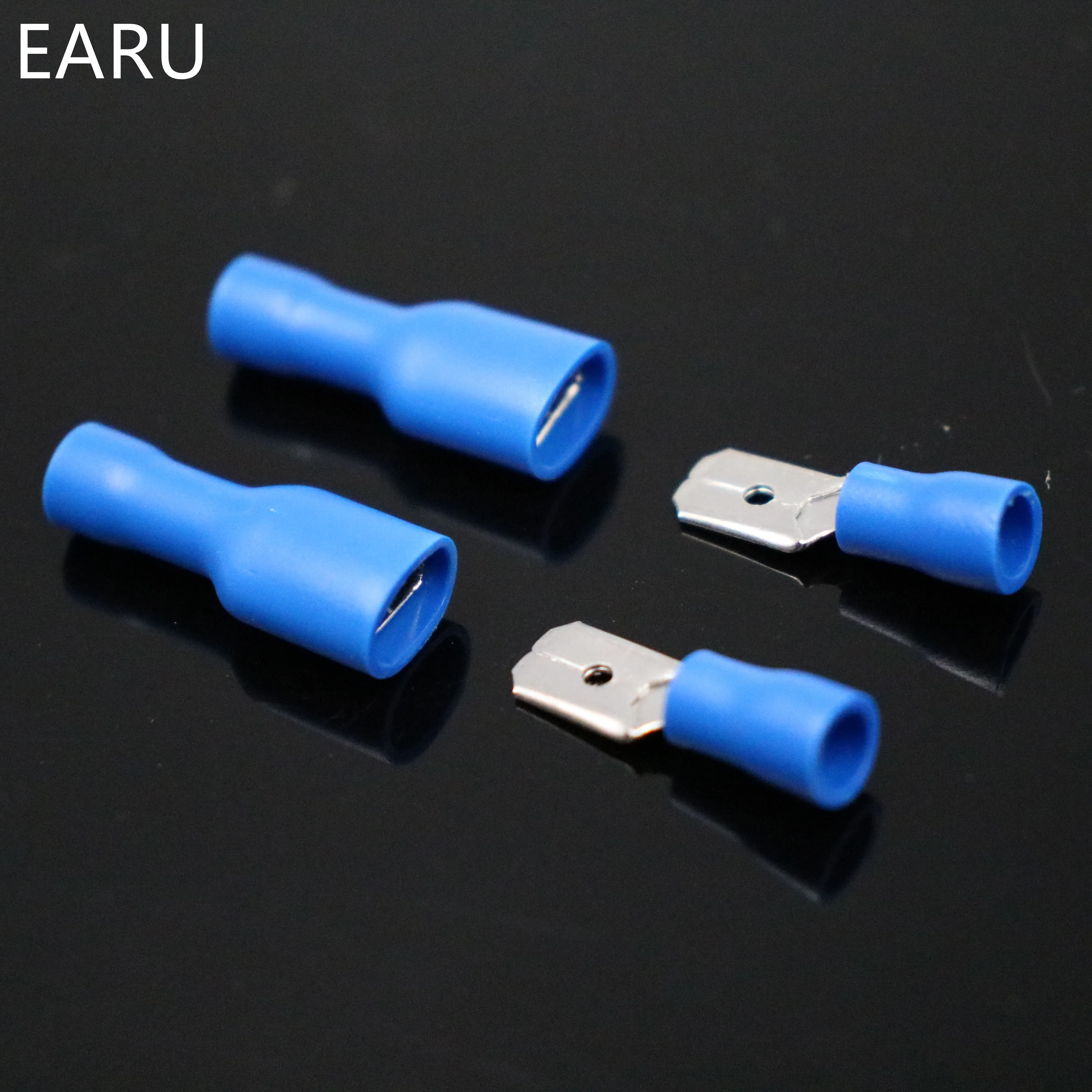 100 шт. 50 пар 6,3 мм 16-14AWG Женский штекер электрический соединитель проводки ОБЖИМНАЯ Изолированная клемма Лопата синий FDFD 2-250 MDD 2-250