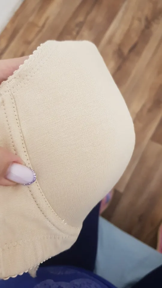 Ни о каком хлопке внутри речи нет абсолютно. Начну носить100% все начнёт чесаться.Чашки настолько стиснуты на В никак не тянет.В прошлую беременность тоже брала на Али лифчик,но с этим рядом не пробегал, выкинутые деньги.Сами чашечки тоже сшиты криво одна грудь острая,другая плашмя(на фото к сожалению не очень видно)и заломы в паралоне в итоге На последнем фото видно что и высота самих чашечек разная.И не понятно зачем 4 застежки сзади,можно было хоть 3 обойтись?!Вообщем сплошное разочарование.