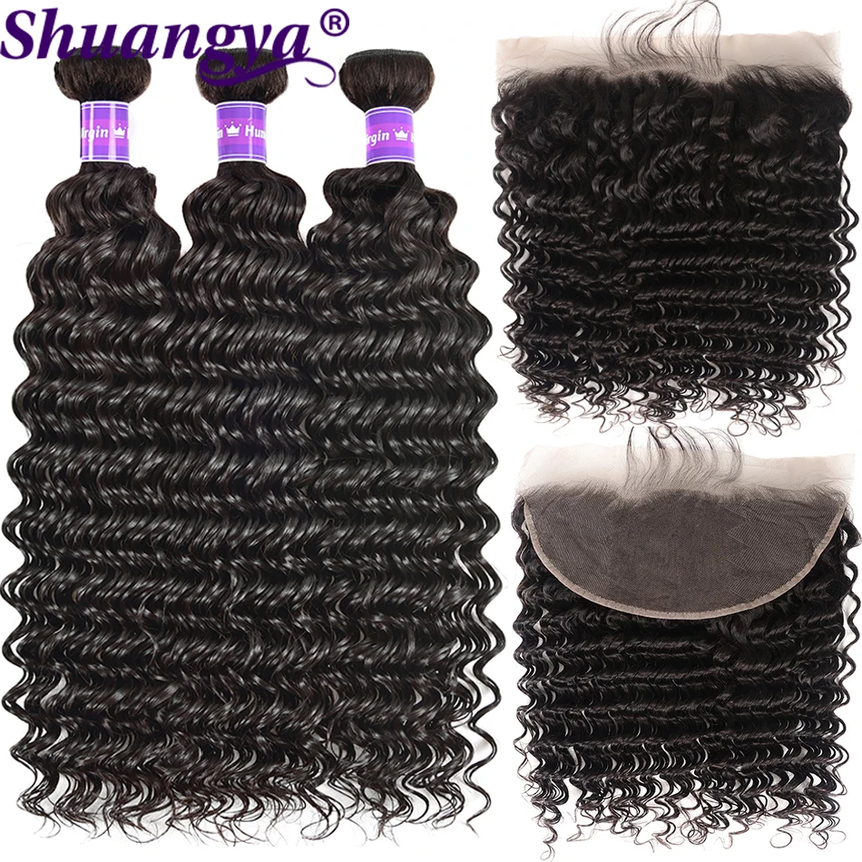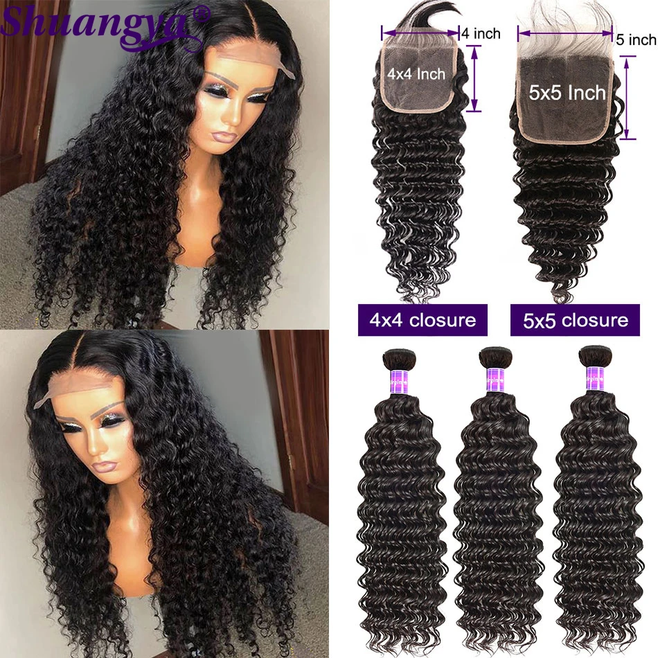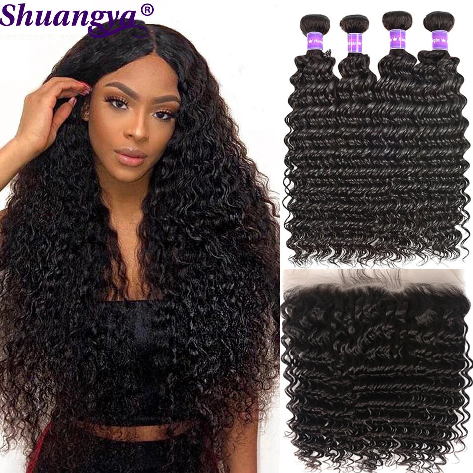 4x4 5x5 13x4 бразильские волнистые пряди с фронтальной 100% девственные человеческие волосы пряди с закрытием глубокие вьющиеся волосы с фронтальной
