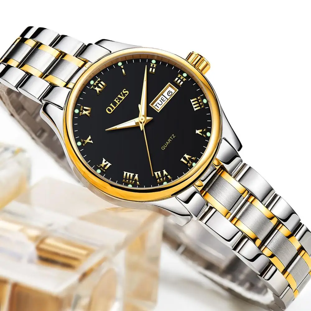 Особенности: Номер модели: OLEVS 5568 Стекло часов: Хрустальное стекло Hardlex с покрытием Ремешок для часов:Кожаный ремень/нержавеющая сталь Корпус часов: корпус из сплава Пряжка для часов: удобная пряжка Водонепроницаемость: Водонепроницаемость 30 метров Диаметр циферблата часов: для мужчин/38 мм для женщин/29 мм Корпус часов: толщина 9 мм Вес: кожа: Мужская/38 г Кожа: Женская/25 г
