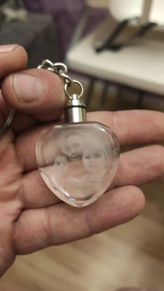Я заказывала в подарок своему супругу, наше первое совместное фото. Это так здорово! Он в восторге! Доставка была долгой, но продавец был всегда на связи. При оформлении заказа, вначале все нюансы уточнил. В общем мне очень понравился брелок, красиво переливает разными цветами, когда его включить, качество отличное. Собираюсь теперь дочке заказать. Рекомендую магазин и продавца, и конечно эти замечательные сувениры
