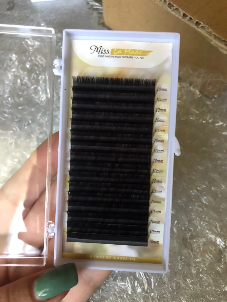 Хорошие ресницы, мягкие и в работе удобные. В жёлтой упаковке глянцевые, в розовой матовые. Доставка быстрая, 2 недели в Волгоград. Спасибо продавцу :)