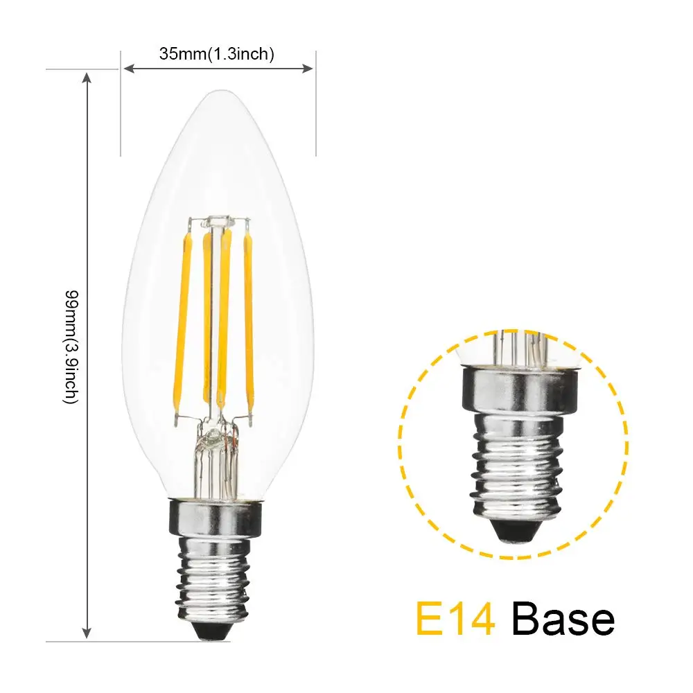 Светодиодная лампочка E14 в винтажном стиле, лампа накаливания для лампочек Эдисона C35 в стиле ретро, Холодныйтеплый белый свет, лампа для люстры 2 Вт4 Вт6 Вт, 220 В переменного тока, 10 шт.
