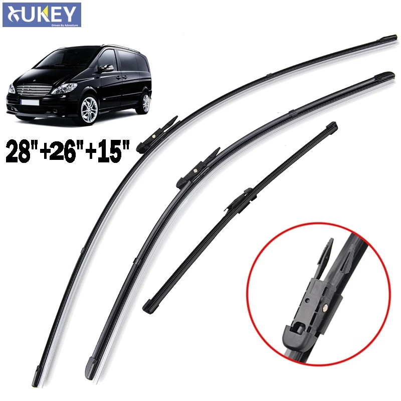 Xukey 3 шт.компл. передние и задние щетки стеклоочистителя для Mercedes-Benz Vito Viano W639 2011 2012 2013 2014 резиновое ветровое стекло 28 "26" 15"