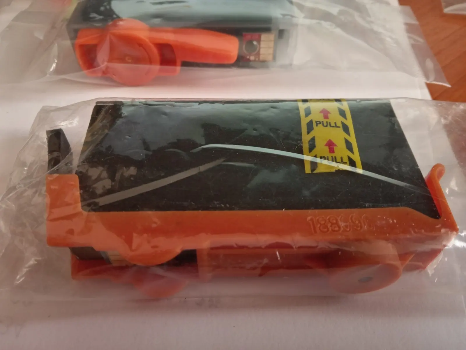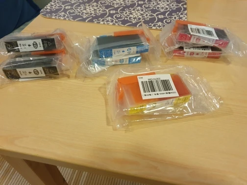 Заказала картриджи в ноябре. Очень долго ждала. Извещение о поступлении товара на местную почту пришло в 13 марта. Открывала спор, продавец продлевал время доставки. Вроде бы целостность товара не нарушена, краска вся на месте. Попробую установить в принтер позже и дополню отзыв.