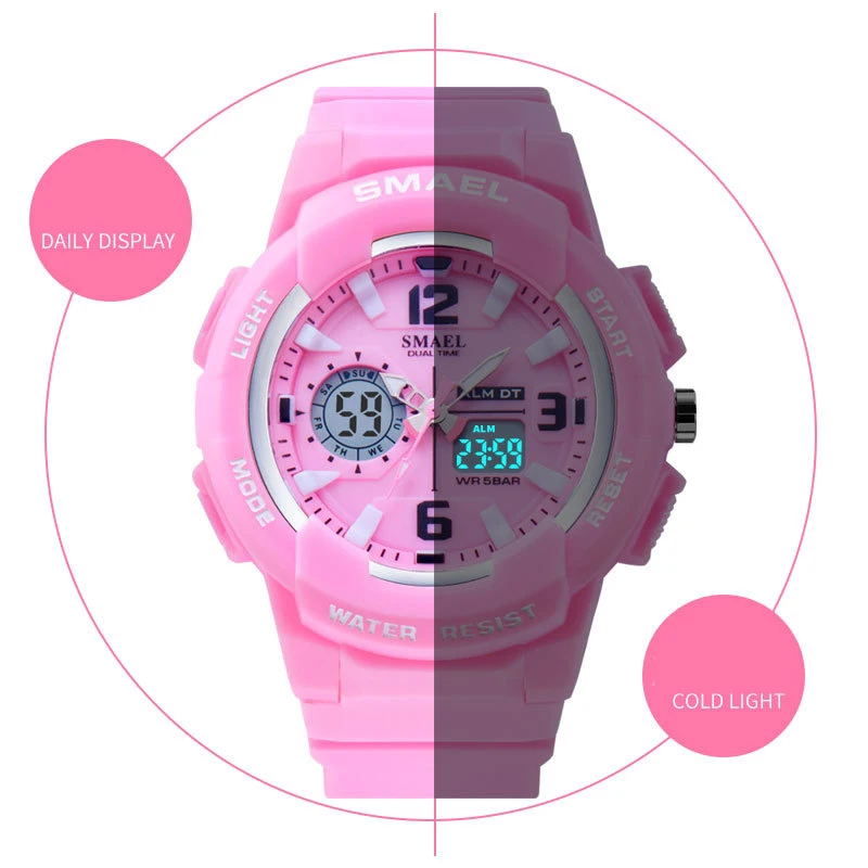SMAEL брендовые Модные женские спортивные часы, светодиодные цифровые кварцевые военные часы, мужские часы для мальчиков и девочек, студенческие многофункциональные наручные часы