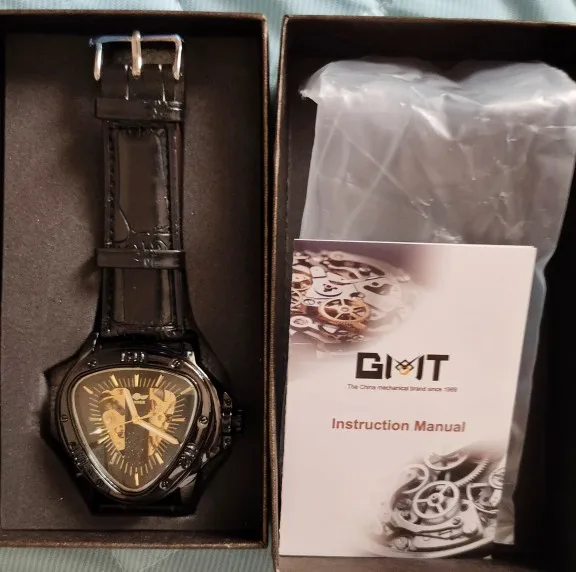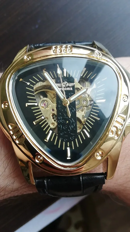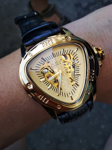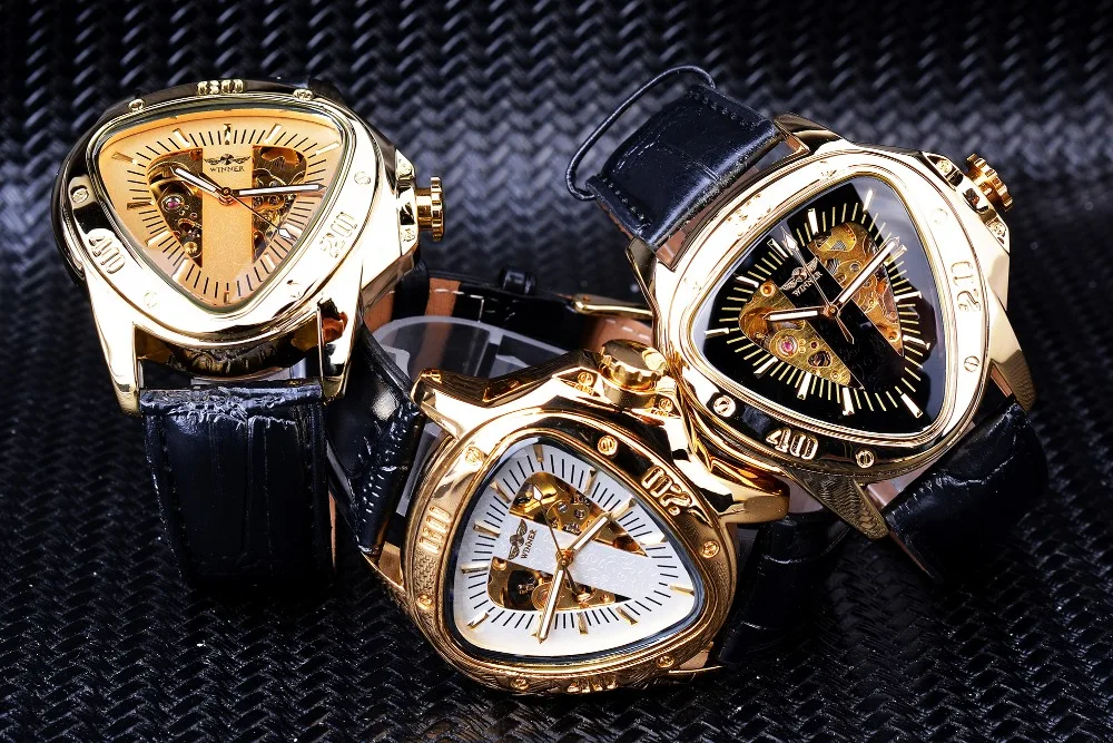 Часы мужские механические, с треугольным золотым скелетом