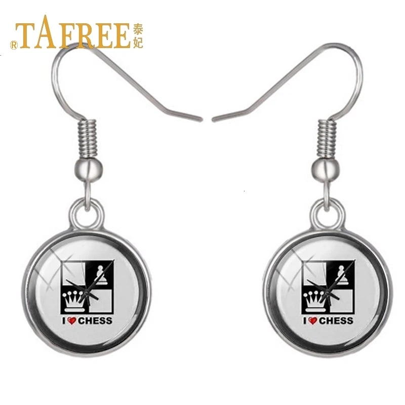 TAFREE Простые Модные серьги с шахматами I love для мужчин и женщин, ретро серьги в виде шахматной лошади, Подарочные ювелирные изделия E587Изображения продуктов: