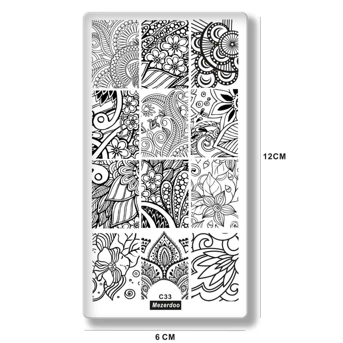 Пластины для стемпинга ногтей с изображением мандалы, подсолнухов, цветов, геометрических линий, линий, дизайна ногтей, шаблон, трафарет C33
