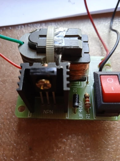 The circuit didn't work following the PCB diagram and even swapped the transistor polarity. However, I removed the transformer and followed the diagram online making my own circuit in a PCB protoboard cut to 40mmx50mm. I added a more powerful MJE3055 transistor too and 220 ohm resistor so can run on higher voltages also. Next will use 2-3 of the 18650 batteries or a 9V @ 1000mAh battery. Impressed that such a tiny transformer can put out arcs at 3.7V like an arc lighter. My only suggestion is that they replace the N20 transistor that comes with the kit since it doesn't work and would of saved me some frustration. Delivery was faster than expected and glad I brought 4 of them since can use different resistor values for various voltages.