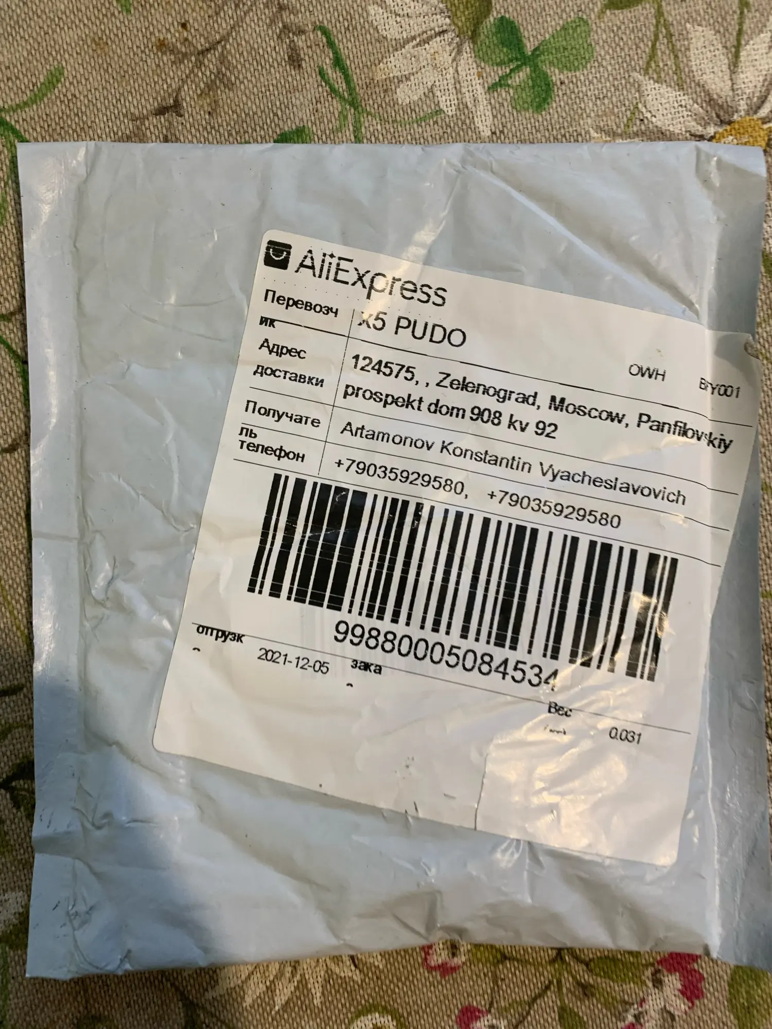 Страна: RU Ships From: China Доставка: Cainiao Super Economy 07.10.2021