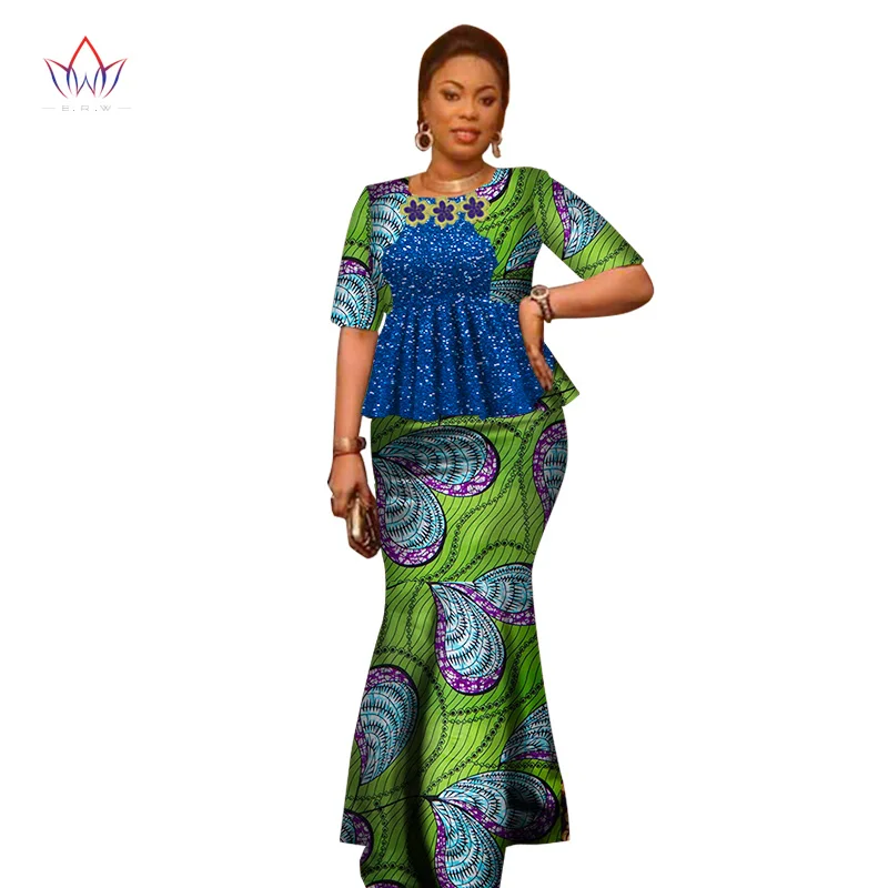 Женское традиционное платье в африканском стиле, комплект из 2 предметов, топ на заказ + горячая Распродажа юбок BRW WY2666, лето