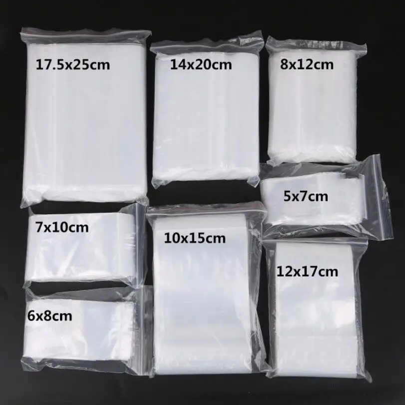 100 шт прозрачный самоблокирующийся пакетик с замком-молнией, пластиковые пакеты 5*7 см/6*8 см/7*10 см, прозрачный пакет с замком для упаковки ювелирных изделий
