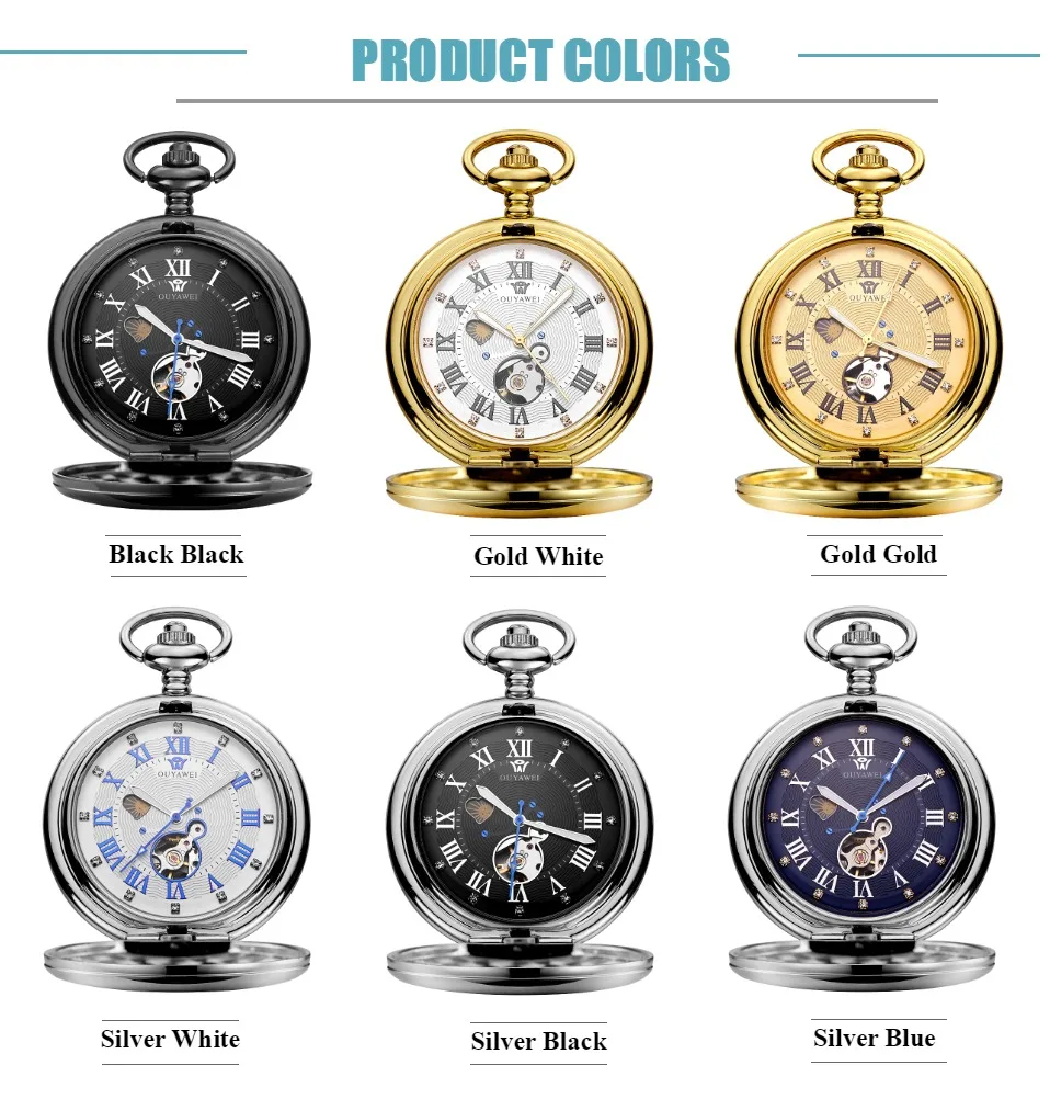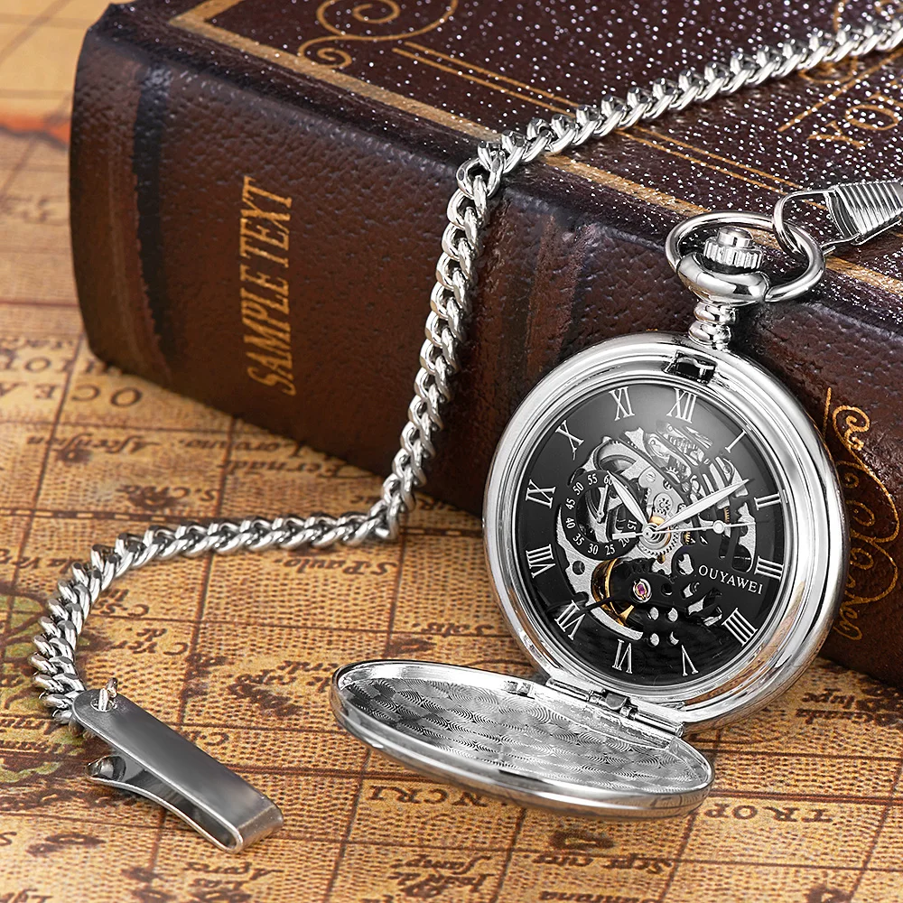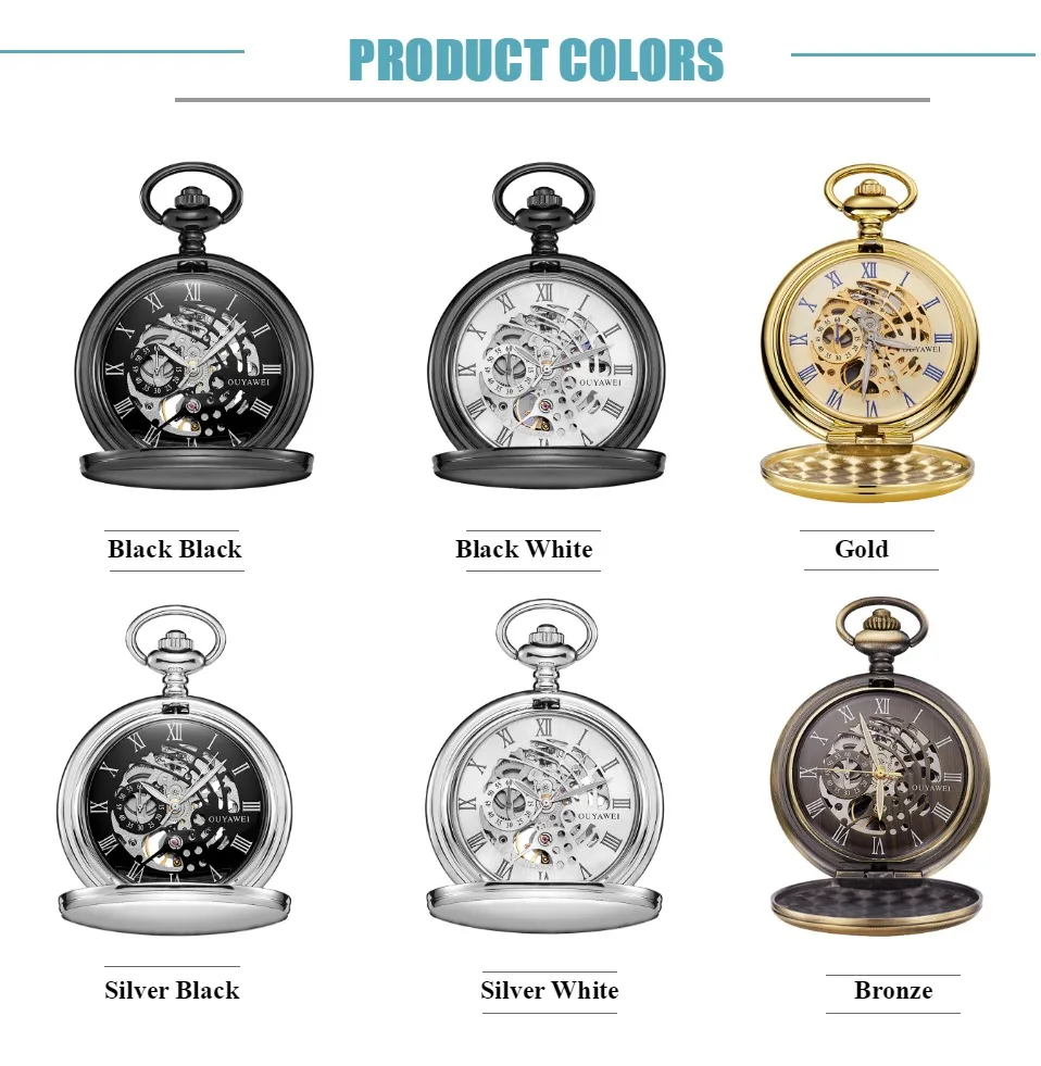 Новинка OYW Механические мужские карманные часы с ручным заводом в стиле стимпанк синие часы-скелетоны со стальным циферблатом модные часы с цепочкой