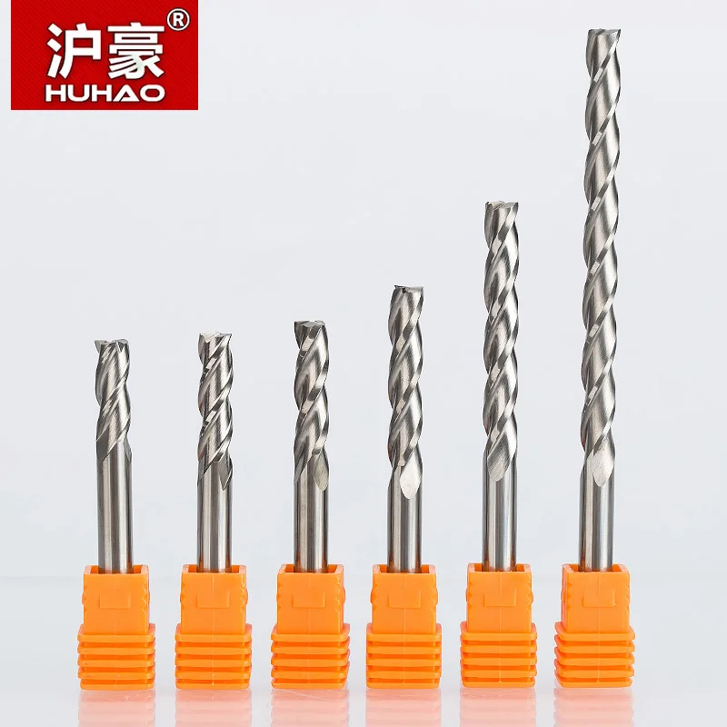 HUHAO 1 шт. 3 флейты спиральные фрезы Фрезы для древесины тугштерн Стальной хвостовик 6 мм CNC Концевая фреза карбид фреза